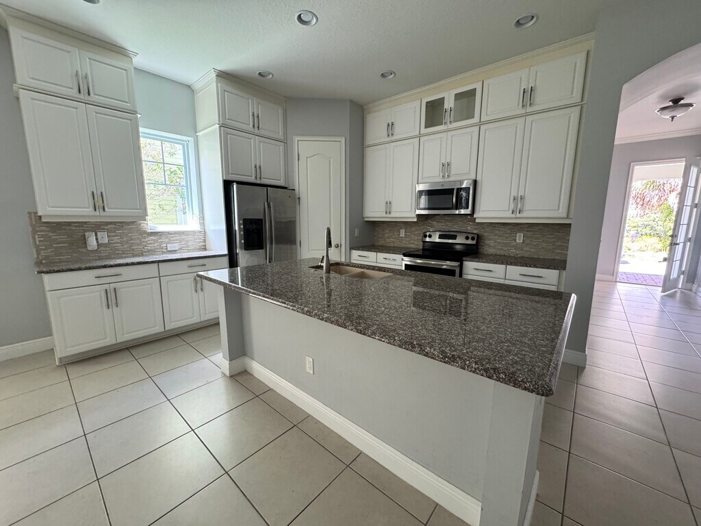 Live in the heart of Lake Nona with this contemporary three-bedroom, two-bath home just minutes from Medical City. The open, light-filled floor plan features ceramic tile throughout the main living areas and warm wood flooring in the bedrooms. The fully equipped kitchen boasts granite countertops, a stylish tile backsplash with under-cabinet lighting, and stainless steel appliances—perfect for both everyday meals and entertaining. The spacious living area flows seamlessly for a modern, inviting feel. The split-bedroom layout offers privacy with a large primary suite featuring a walk-in closet, double vanity, and an oversized walk-in shower. Two additional bedrooms share a full bath with a tub/shower combo and extended vanity. Laundry area includes washer and dryer hookups for your convenience. Enjoy all the benefits of living in Laureate Park, one of Orlando’s most sought-after communities, offering acres of green space, parks, nearby golf and tennis, and a resort-style Aquatic Center with two pools, lounge areas, and a sand volleyball court. Don’t miss this opportunity—schedule your showing today!