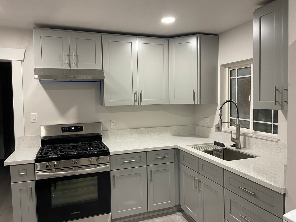 2 bed 1 bath front unit. Completely remodeled, with new kitchen cabinets, newer stove, newer refrigerator, vinyl flooring through the house. The bathrooms is completely redone with new shower, new vanity, and led mirror. Brand new mini split A/C units in each bedroom as well as the kitchen. They offer ice cold air, as well as heat. New mini blinds throughout the house for privacy. Possible on-site parking, but must discuss in person. NO PETS.