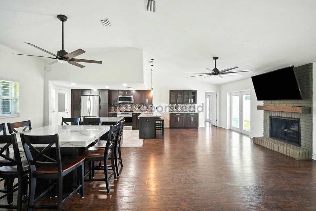 Welcome to 7892 Sundown Dr, in St. Petersburg, FL! This 3-bedroom, 2-bath, 2-car garage pool home located in unincorporated Pinellas County is off the beaten path but close to everything! Once you turn down Sundown Dr, you will realize what a great small neighborhood this is. The home features an open floor plan with a stone fireplace and a view of the screened-in pool. The kitchen opens to the great room and features newer cabinets and stainless steel appliances. The primary bedroom has its own en-suite and walk-in closet. On the other side of the house is another full bath and 2 more bedrooms. This home includes a large smart TV in the great room and a perfectly fitted square marble top dining room table with 8 chairs. The 2-car garage has a large workbench and a full-size washer and dryer. Best yet, this home is equipped with solar panels that keep the electric bill low (the previous family paid less than $35 a month, which included a minimum meter charge) and offers peace of mind for the upcoming hurricane season, knowing you can power some basic appliances should you lose power. All interior walls have a fresh coat of white paint, updated pictures coming soon. Included in the rent is weekly lawn care and pool service, as well as garbage pick-up. Pets: Dogs are allowed. Utilities: Tenant is resp0nsible for electricity, water, and internet Amenities: Screened-in pool, fireplace, solar panels Don't miss out on this fantastic home! Contact us today to schedule a viewing and experience the charm of this exceptional property for yourself! Lease Terms and Application: Lease Terms: 12 months, available for move-in now Application Fee: $35 per applicant (non-refundable) Security Deposit: Equal to 1x the monthly rent based upon approved credit Qualifications: Renters should have a minimum credit score of 640 or above and a gross income, from any and all eligible sources of income, of at least 3x the monthly rent Lease Start: Preference will be given to applicants with the earliest start date Please view our statement of Rental Policy for further details N0 more than three (3) pets are allowed per home (subject to local laws and HOA Rules and Regulations). Renters Insurance with pet coverage is required. Dogs: The list of domestic dog breeds that are restricted includes: American Pit Bull Terriers, Rottweilers, Staffordshire Terriers, and any dog that has a percentage or mix of any of those breeds. Any canines other than domestic dogs (wolves, coyotes, dingoes, jackals, etc.) and any hybrids of them are not permitted. Disclaimer: Only Doorstead may rent this property. Ignore listings or ads with unaffiliated contact information.