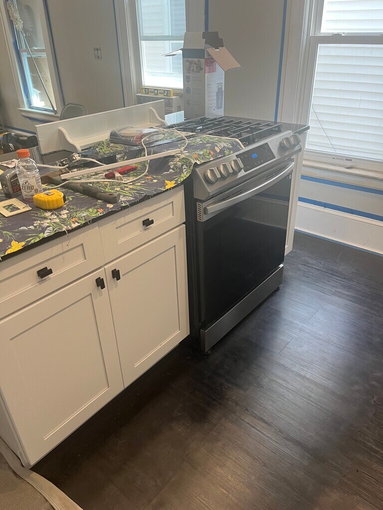 OPEN HOUSE: Saturday February 14th, 2025 3:00 - 3:30 Pm. Fully Renovated 3 bedroom apartment. New Kitchen with custom countertops with matching pass through opening. New appliances to include: refrigerator and ice maker. Garbage disposal and dishwasher. Plenty of storage space, cupboards are pull out and soft close. New bathroom vanity, medicine cabinet, toilet and faucet. Each unit has its own Washer and Dryer. Off street parking available in fully concrete driveway. New insulation and siding. New tilt in vinyl replacement windows. New kitchen and bathroom flooring. Fully renovated original 1910 Hardwood floors. Walk-in closet. Barn doors and new bi fold doors. all new electrical and plumbing. This unit has many windows with great lighting with an open front porch .