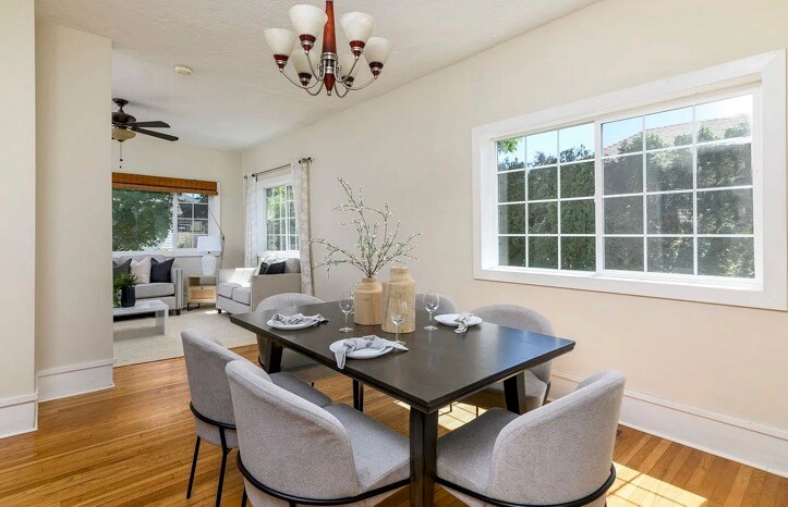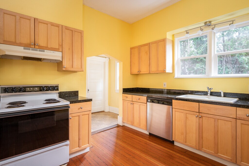 Tall ceilings and hardwood floors make this vintage 1904 home feel warm and spacious. Quiet street with lots of on street (and off street) parking, a garage for storage, fresh exterior paint and a mahogany front porch make for a relaxing home. Close to bus lines Washer and dryer Granite countertops High ceilings Shaded back yard No smoking