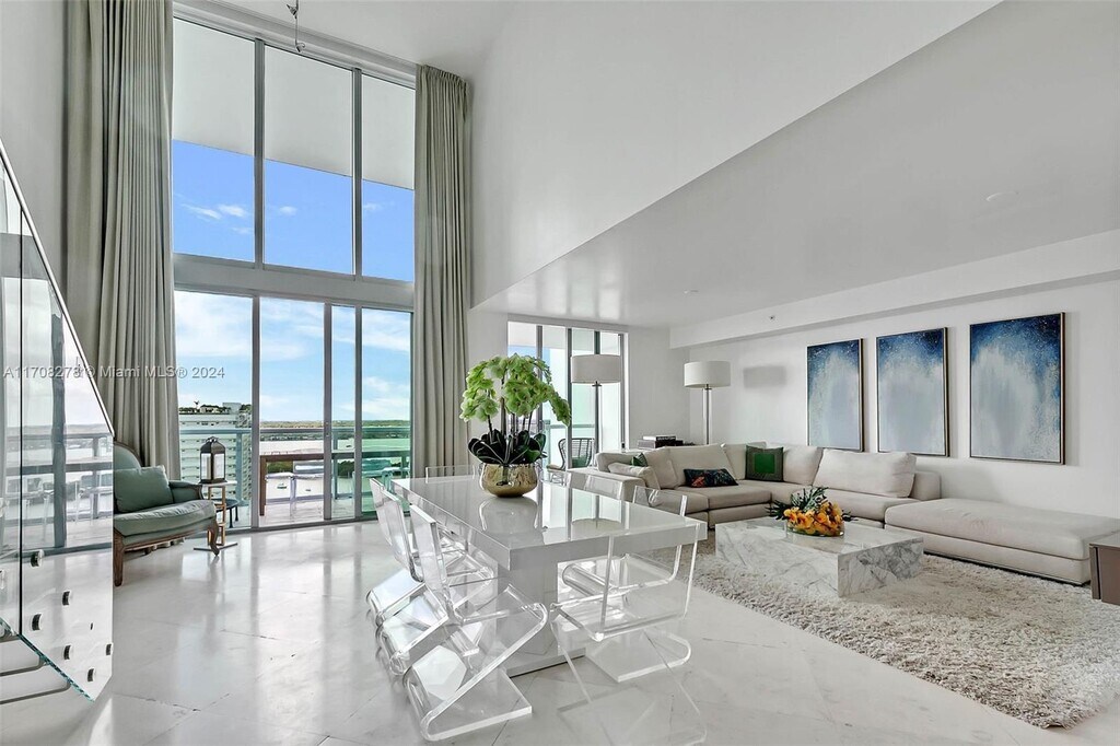 Spectacular 2 story penthouse with stunning water views. Unique architectural masterpiece of 4 bedrooms, 3.5bathrooms, large boudoir, powder room, 22 foot ceiling, floating glass staircase. Recently renovated by a renowned architect, high-end kitchen and dream built-in closets. Floor to ceiling glass impact windows... throughout with views of the Ocean, Intercostal, Indian Creek, South Pointe, Sunny Isles, Biscayne Bay... Building offers state of the art amenities including a waterfront swimming pool & jacuzzi, fitness center, tennis and basketball court, private marina (docks available if needed) and 24/7 concierge and security. Must see!