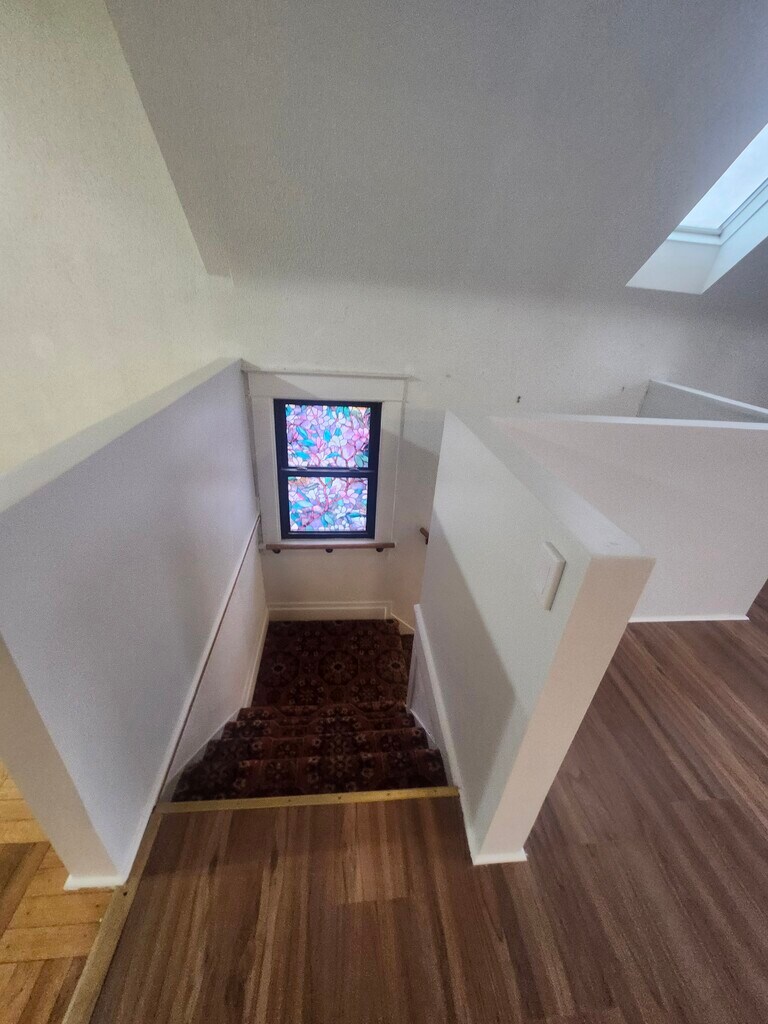 This bright, upper-level duplex offers a spacious 1,250 sq ft layout with two bedrooms and one bathroom, located in a quiet residential neighborhood on the north edge of St. Paul. Large windows, skylights, and original hardwood floors create a calm, light-filled living space with vintage charm and modern updates. Apartment Features • 1,250 sq ft • Two private bedrooms • Full living room and separate dining area • Updated kitchen with stainless steel appliances, including gas range, microwave, refrigerator, and dishwasher • In-unit full-size washer and dryer • Original hardwood floors • Two skylights plus sun tunnel in bathroom • Full bathroom with tub and built-in storage • Ceiling fans • Ample storage, including walk-in closet and built-ins Utilities Included Heat, electricity, and water.