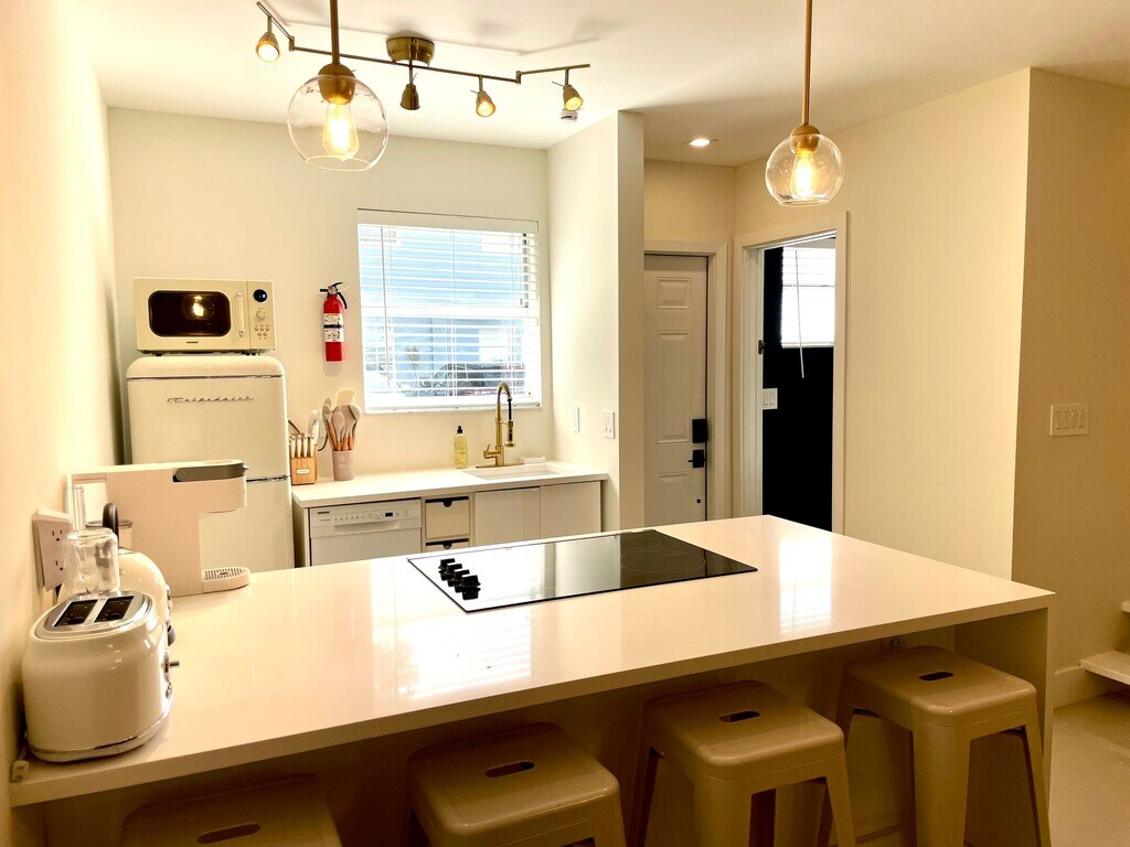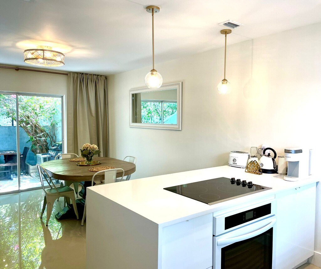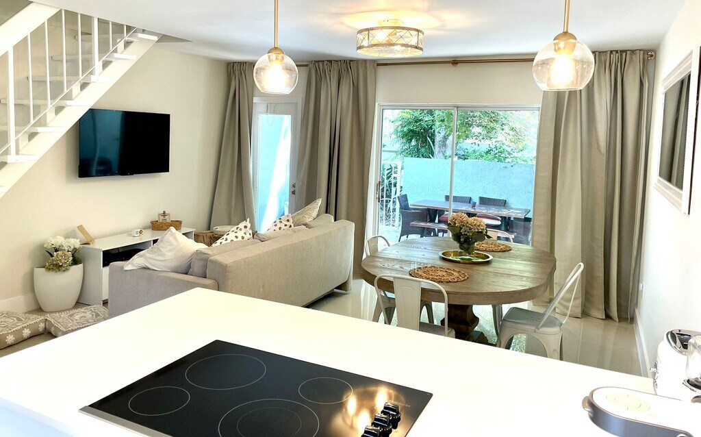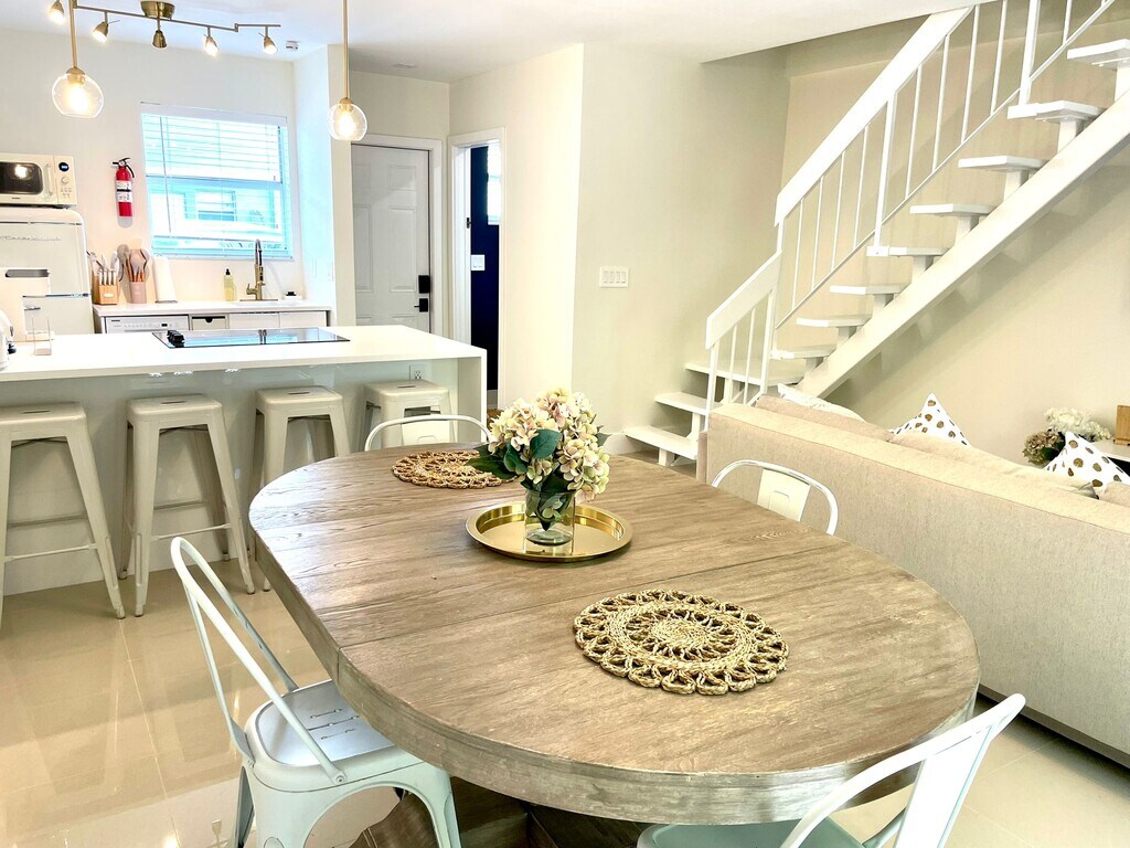 Le Phare Key Biscayne Beach Home: In prestigious Key Biscayne, the salty breeze surrounds you at our Le Phare (The Lighthouse) classic Florida meets chic, one bedroom + den, 2 bathroom, eco-friendly Beach Townhouse, 2 blocks from the Beach with breathtaking sunsets. Sleeps a family of five. Relax at the outdoor patio, grill, enjoy the best neighborhood Golf, Tennis, Pickle-ball courts & top restaurants, a few minutes away. Bring your favorite people and let the breeze guide your heart. * Living Room: step into an open floor plan that makes the living room a breezy place to kick back. Cozy up on the sofa and watch cable TV or stream your favorite apps in the flat-screen. A handy set of games to keep all the family entertained and a soothing white and sand color palette brings the hues of beach inside. The sofa can become a super comfortable queen bed if your friends or family are joining you as well, with top of the line comfort mattress and crisp white cotton sheets. You will open the main door to a happy place! *Dining Area: Come dinnertime, the open layout definitely comes in handy. Cook up something delicious while the children watch TV, the grandparents play a game of cards at the nearby dining table, and others hang out in the patio through the sliding glass doors. Then gather for dinner at the 6-person table inside or eat outside under the stars. *Kitchen: The kitchen is sunny and cozy, with its retro look, ensuring you have everything you need. All new appliances and well-stocked cabinets, with everything you need to entertain at your leisure. Dining sets for 6, glasses, mugs, cooking utensils, pots and pans, baking dishes, baking and muffin trays, cookie sheets, and even a breakfast bar which includes: a Keurig coffee machine, a Bodum French coffee maker, toaster, blender, an electric kettle, all ready so that no one has to start the day unhappy. We leave you with a starter kit of our favorite K-cups, or grab some more at a nearby Winn Dixie grocery store. Of course, there is also a refrigerator, stove, microwave for you to use. The Laundry is upstairs in the den room, it has a washer and a dryer for you to use during your stay. *Patio and Pool: Walking out of the living and dining room is everyone's favorite spot! a space to lounge, eat and stay over long conversations with a grill, and a beautiful relaxing outdoor eating area for lunch in the sun or dinner under the stars. In the outdoor storage box, please find the beach umbrella, chairs, as well as a cooler to take to the beach with cool drinks. Another more private space to relax outside is the upstairs balcony. And a few steps away is the pleasantness of the pool. And of course, the pool deck, where you will lounge and relax after a great soothing swim. The pool is not heated. Gorgeous all year round, like heaven on Earth! Please note you have a set of stairs to access the second floor of the townhouse, where you find the master bedroom, master bathroom and den, and it does not have an elevator: *Master Bedroom and Den: Every room at the Le Phare Key Biscayne beach townhouse has its charm! With top-of-the-line comfort mattress and crisp, white cotton sheets (no microfibers to protect the planet). Light blocking curtains let you sleep in, bedside reading lamps and flat-screens in every room are great for night owls. Our new flat screen TVs lets you watch local cable or stream your favorite Netflix shows and movies onto any of the TVs. The master bedroom has a king-size bed, with the Zinus mattress for a heavenly sleep, a closet and the master bathroom. The den has a sofa bed, which is a twin bed, thought for children as well with games and books, and a PacknPlay for a little one (please bring your own baby linen). *Bathrooms: The master bathroom on the top floor has a tub, double vanity's. The first floor bathroom by the foyer, with its blue elegance, has a shower, as well. We leave you with towels of course, and shampoo, conditioner, liquid bath soap, hand soap, body lotion, and beach and pool towels as well. Parking: you will have TWO parking spots assigned during your stay. AVAILABLE DECEMBER 2025