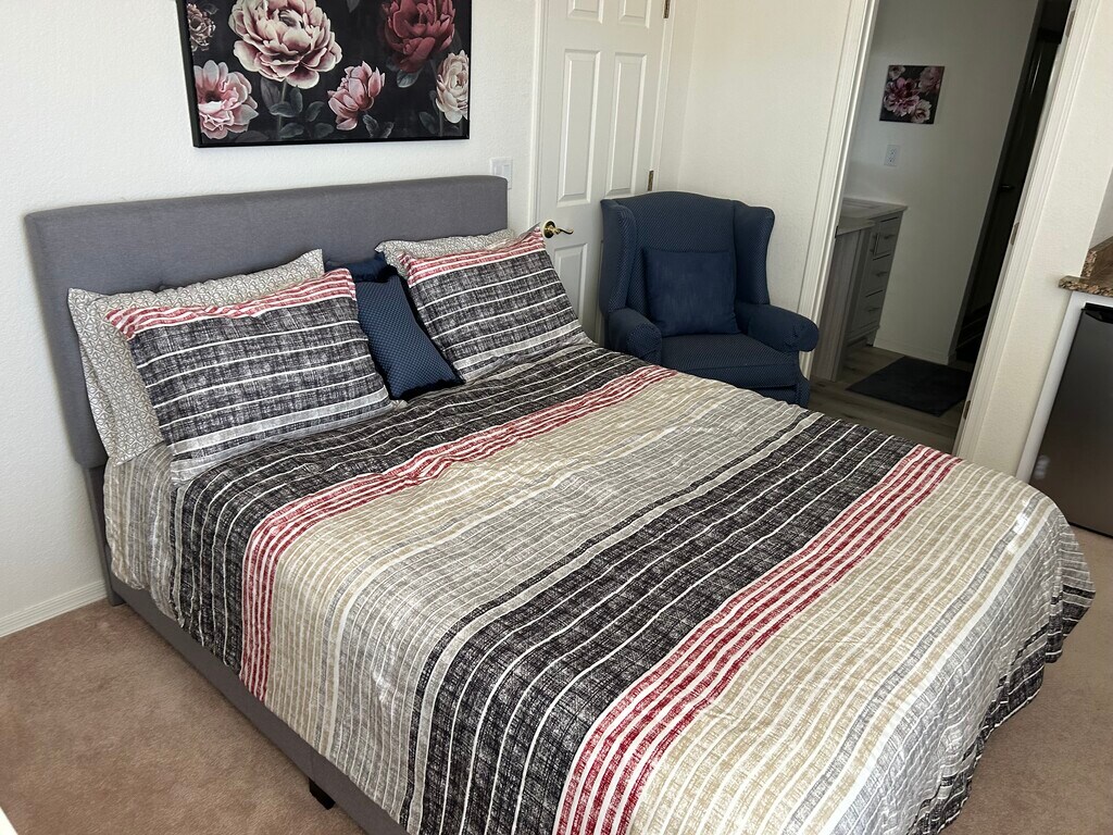 Beautiful and peaceful - Bedroom, complete bath with Kitchenette. Totally furnished - washer and dryer. 300 square feet with patio. Utilites paid. . Private entrance and Private parking. NO PETS, NO SMOKING, NO VAPING..