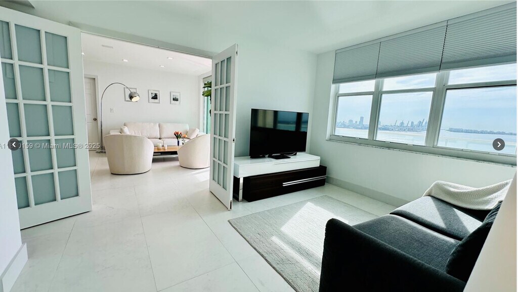 This beautiful furnished and peacefully decorated home offers the perfect blend of modern luxury and serene waterfront living . Unique split-floor plan, over 960 ft.² two bedrooms, two baths and breathtaking direct view of the vibrant Biscayne Bay. Imagine waking up to the gentle sunrise over the water and unwinding with stunning sunsets each evening!!
