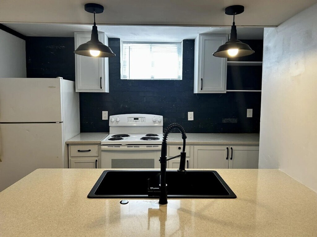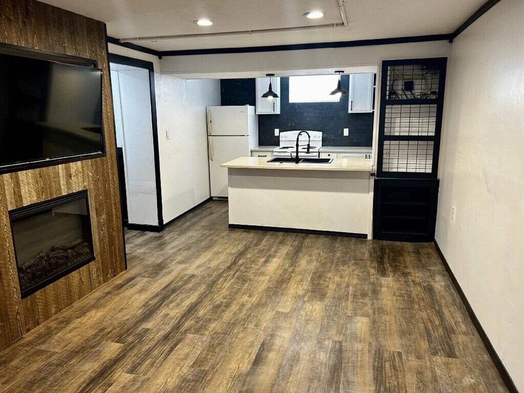 Unit D - 1BR/1BA - basement unit Features include: Rent: $1100 - 1yr lease. $1200 - M2M Utilities Included: Water, Electric, Gas Parking: Off street driveway parking. Spacious Living Area: Open concept with Fireplace and mounted smart tv Modern Kitchen: updated island with ample storage. Comfortable Bedroom: large window, allowing for plenty of natural light. Platform fits a queen mattress. Updated Bathroom: Clean and contemporary design with modern fixtures and walk-in shower Walk-in closet: Walk in closet with plenty of storage Shared Laundry: Convenient washer and dryer included for your ease. Pets: small pets allowed, under 25 pounds