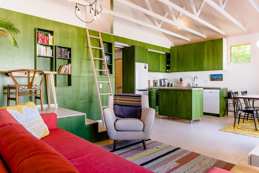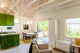 - fully furnished - month to month rentals - one month minimum - one month's notice to move out Welcome to this one of a kind newly built 525 sq/ft, airy and modern one bedroom guest house. Each detail was custom designed for efficiency, beauty and fun by a local architect. The full kitchen includes everything to cook meals. A cozy bedroom has a comfortable queen bed and living room features huge windows, exposed beams, built in library. Bathroom features a clawfoot tub and beautiful concrete tiles. A private patio is a great place to enjoy sunny outdoor meals.