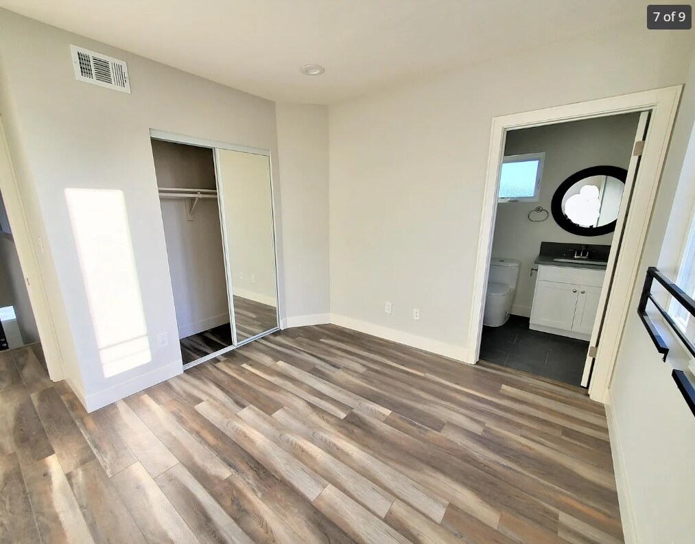 Cozy, modern and bright 4 Bedroom Townhouse in East Hollywood walking distance to restaurants on Melrose Ave as well as Lemon Grove Park and Rec Center! New Construction (2020) with one bedroom downstairs and three bedrooms upstairs. Each bedroom has its own en-suite bathroom + recessed lighting. Two of the bedrooms have walk-in closets. The downstairs bedroom features a sliding door leading to a private patio. The entrance opens to the living room, dining area, and kitchen with laminate flooring and recessed lighting. The open kitchen includes quartz counters, a tile backsplash, white cabinets and drawers with brushed silver hardware, and stainless steel appliances. Kitchen appliances include a gas stove, single oven, microwave, dishwasher, and refrigerator. There is a half bathroom downstairs. A laundry closet with a stackable washer and dryer is in the hallway. 2 Parking Spaces with a one-car garage and an assigned parking spot. Located in the Hollywood Studio District moments from Paramount, Netflix, Sunset Gower Studios and minutes from trendy Larchmont Village, action-packed Sunset and Vine, Koreatown, Wilshire Blvd, USC, and numerous nearby studios and restaurants. Conveniently situated near the 101 freeway. Renter covers electric, water, gas, and trash. No smoking.