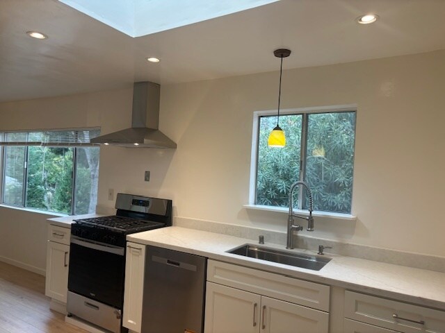 This 3 bedroom 2 full bath house has been newly remodeled complete with brand new flooring, appliances and paint. There are mini splits through out the house that provide air conditioning and heating. The living room provides an open floor plan into the kitchen. There is a large deck which allows for star gazing and or sunbathing with a private curtained area. The backyard has a small tool shed for landscaping tools that the grounds keeper and a large shed that has been finished with sheet rock and electrical. The large shed can be used as an office or a artist studio with attic storage. There are mature herb bushes in the backyard along with lime trees. Large private back patio great for entertaining. All utilities are the responsibility of tenant, grounds keeping is paid for by owner. The upstairs bedroom has a large walk in closet. All bedrooms have access to an outdoor area. The bedroom with the private entrance could be used as an exercise or yoga room.