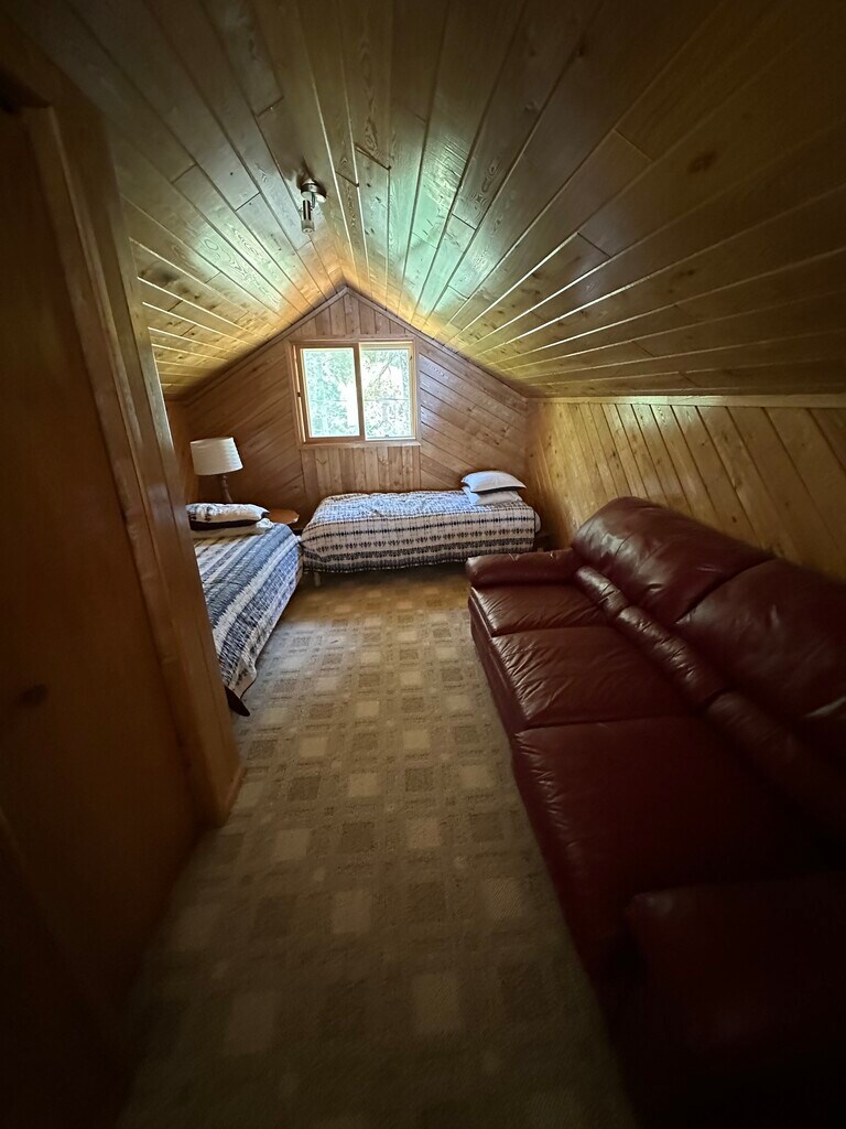 Nice house on Lake Nichols, level front yard with 100 ft of shoreline, large main floor bedroom with ample closet space, great kitchen that has plenty of counter space ; separate dining area , wood burning stove in living room , loft could be used as a bedroom, office space etc. Excellent views of the lake from the loft, large front deck and living room. Full Bathroom has a large sauna. Two car detached garage. Great fishing, hiking, snowmobiling and ATV riding. Only a half hour from Duluth, Cloquet or Virginia. Live on a quiet Lake!