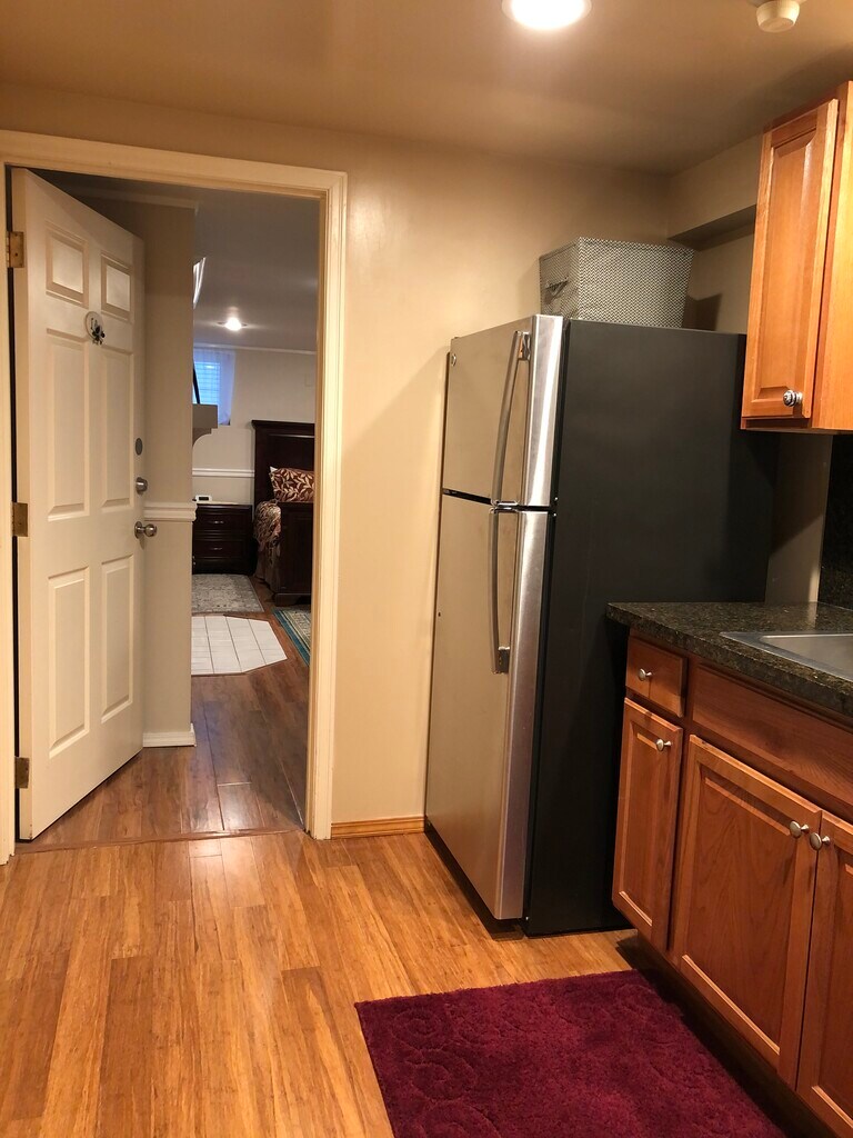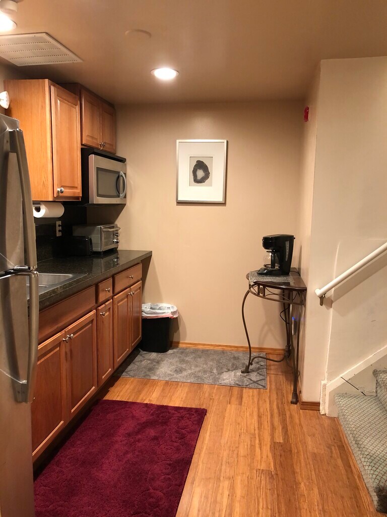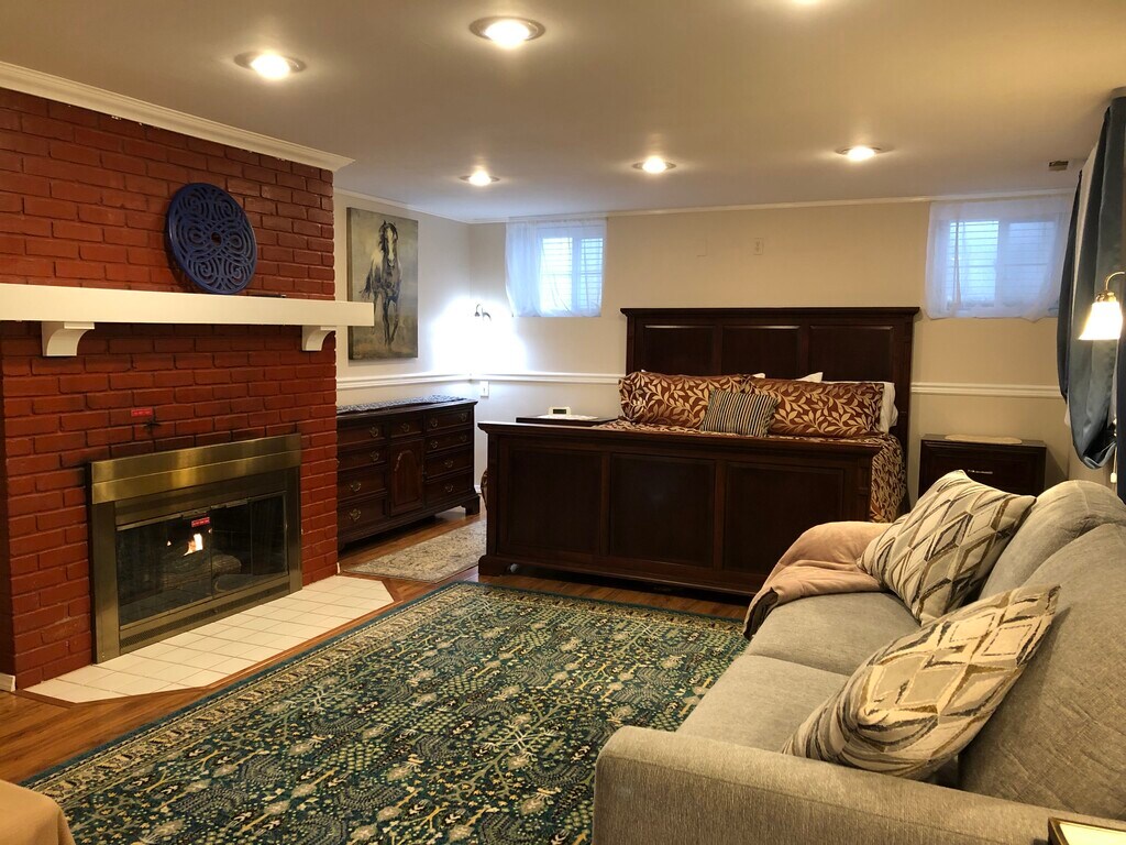 Short term furnished suite with king bed, fold-out sofa, kitchenette, flat-screen TV, gas fireplace and double spa tub/shower. The kitchenette includes a fridge, sink, microwave, toaster oven, coffee maker and hot plate. It's a large suite on the lower level. This suite is available for stays of one to several months. WiFi is available. Location is convenient to many Sunnyside businesses and the hospital. Please contact us with your housing needs.