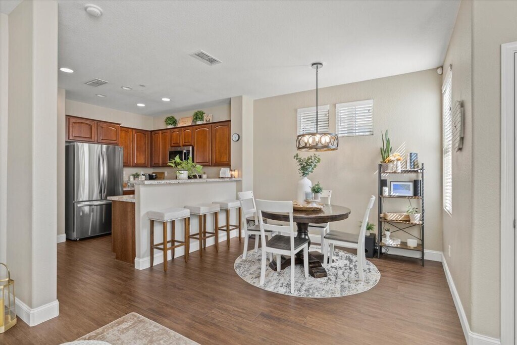 Executive Town home Living –Updated Jewel in the highly sought after Esplanade Area in the Foothills section near Folsom Lake • Shown by Appointment ONLY - Unit currently occupied. DO NOT DISTURB TENANT • $2975 per month – 18-24 Month lease • Net Lease Available 12/1/25 This immaculate, updated and modern 3-bedroom, 2.5-bathroom home perfectly combines comfort and style - offering a long list of premium upgrades and amenities throughout. With a flowing 1355 sf floor plan, this one-of-a-kind executive home in Esplanade offers the best of everything in Folsom, including lush surroundings in a quiet and private Community, close to restaurants, shopping, freeway access, top-rated schools and recreation (direct access to pool, spa, scenic walking trails, Lake Folsom) MAIN FLOOR: Open concept floor plan with well-appointed touches at every turn. Living and dining areas adjoin your chef’s kitchen, featuring: granite counter tops and breakfast bar; new top-of-the-line appliances including gas stove; a separate pantry and plenty of storage. High-end vinyl plank flooring and 5-inch baseboards throughout. Your guests will enjoy a well-lit and appointed downstairs guest powder room with HE toilet. The living room even features a cozy Electric fireplace providing a welcoming ambiance.. UPSTAIRS: You’ll find 3 good-sized bedrooms and 2 full bathrooms, including the large primary suite with well-appointed en-suite bathroom, featuring tub/shower, dual sinks, tiled vanity, large mirror and vinyl plank flooring. The second full bathroom also features: tub/shower, tiled vanity, large mirror and vinyl plank flooring. A large walk-in tiled laundry room with washer/dryer and adjoining linen/storage cabinets. Plush carpet throughout. Ceiling fans, upgraded window coverings and curtains in all bedrooms. PATIO: Wraparound front patio with gated entrance offers space for outdoor seating and barbeque with view of well-manicured landscape – steps away from the Community recreation area, including pool, spa and clubhouse. GARAGE: Full-size attached 2-car garage with shelving space for storage, a workbench, new fast-recovery water heater and garage opener with separate outside remote. THROUGHOUT: Updates everywhere: recessed lighting; dual zone (upstairs and downstairs) central heating/air; ceiling fans and convenience lighting throughout; windows/window coverings in every room; generous closets/cabinets/storage upstairs and downstairs and security cameras outside the front door and outside the garage. SCHOOLS: Folsom Hills Elementary School (9 of 10) Folsom Middle School (8 of 10) Vista Del Lago High School (10 of 10)