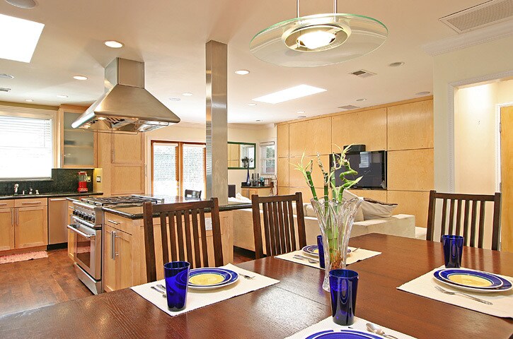 This Spectacular (Fully furnisher) home has 2 Bedrooms w/ converted living room/ 3th Bedroom / 2 full baths home. This room is equipped with a plasma T.V. and a fire place. Accordion style room dividers will be brought in to give you the privacy and separation of a bedroom. In addition, a stylish wardrobe closet would be brought in. The master bedroom has a king size bed, private deck ,40” plasma TV and the bath has a Jacuzzi tub as well. The 2rd bedroom has access to the 2rd bathroom along with washer and dryer. This remodeled home boasts great rooms with skylights, dark wood floors, plenty of storage, and designer-decorated Chef’s kitchen, beautiful and private outdoor entertaining areas .The Family room features a plasma TV, surround sound & access to the outdoor entertainment area. The property perimeter is completely fenced and gated. Private, well-lit and groomed lush landscaping and is great for outdoor entertaining. The outdoor entertaining area located just off of the family room provides a private with a gas grilling station, preparation area; including counter seats and umbrella tables and chairs; wooden deck; and outdoor sound system. This property is perfect for professionals, entertaining, and for couples with pets. This home is with in a short walking distance to the Brand New Flag Ship Whole Foods Market and just on half mile from the Venice Beach Boardwalk, and two miles away from Santa Monica's Third Street Promenade. Santa Monica has been named the best neighborhood/area for great restaurants in Southern California by the 2008 Zagat Guide recently as being one of the top ten dining destinations in the world. Walk to Venice Beach in 10-15 minutes, or just five minutes by bicycle. The house is in a friendly residential neighborhood on a dead end street with ample free street parking, with easy access to Santa Monica, Pacific Coast Highway (PCH), the 10 Freeway, and Los Angeles Airport (LAX).