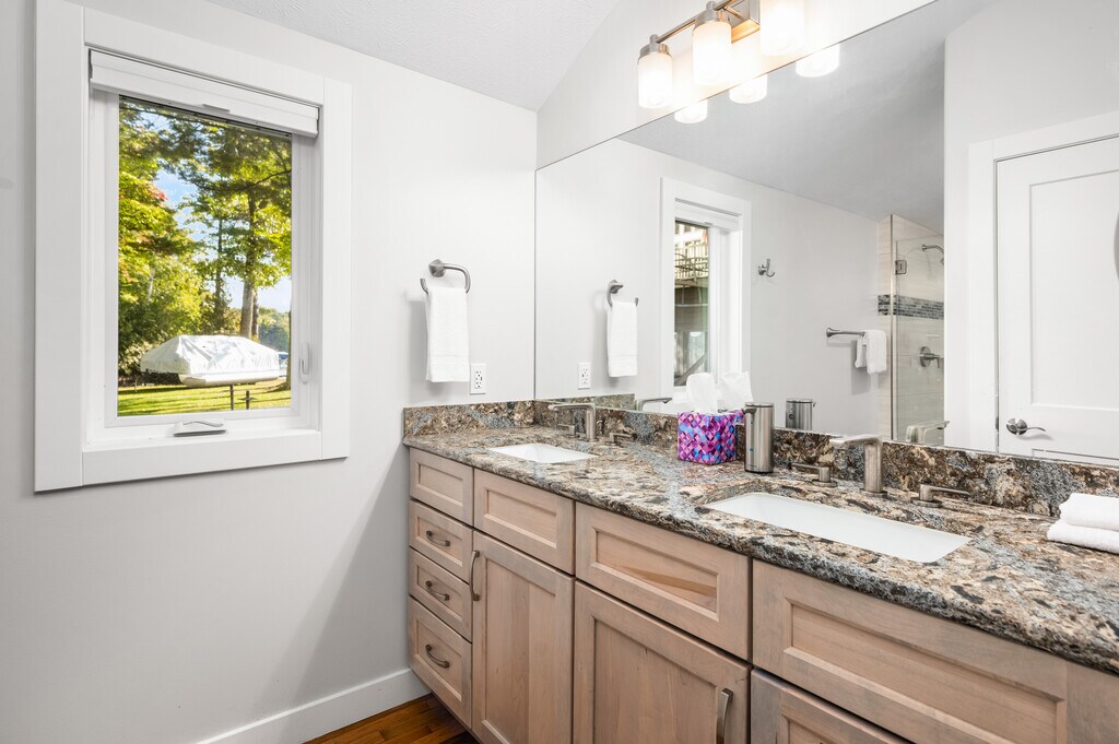 3 Bedroom / 2 Bathrooms, full house rental on Long Lake private waterfront & hot tub! 4-6 month rental available from November 2025 through May 2026. Complete renovation — all new bathrooms, kitchen with all new appliances, and raised 9 foot cathedral ceiling in the living space leading to a south facing deck the full length of the building. Quiet resort-like atmosphere and almost 3000 acres of all-sports lake, 4 miles from end to end. With a king bedroom, a queen bedroom, and a bunk room with a twin over full bunk bed plus a twin with twin trundle underneath, there is plenty of room! The driveway can accommodate 2 cars maximum. Renters agree to observe strict community Quiet Hours between 10pm - 7am. Parties, fireworks, and smoking of any kind are not permitted on the property. No pets permitted.