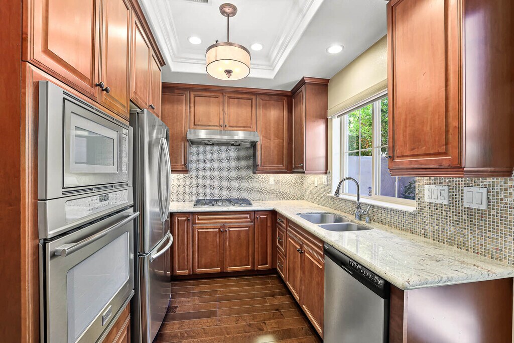 A lovely and luxurious space to call home in the acclaimed Arcadia school district! Don't miss this two-story townhome, privately nestled at the back of a 4-unit community. Downstairs, you'll find the living room, dining room, well-appointed kitchen with included stainless steel appliances - refrigerator, dishwasher, gas cooktop - and around the corner, the in-unit laundry and guest bath. Upstairs, are the three spacious bedrooms, each with their own attached bathroom! The primary suite is large and inviting, with a lovely window seat, walk-in closet and generously-sized bathroom with jetted tub. Enjoy some sunshine, fresh air and fruit trees outside in the small back garden. The attached 2-car garage with side-by-side parking is large enough for your cars and SUVs. Bonus features: tankless water heater, water softener and there's even a storage area alongside the rear of the house. This wonderful townhome is conveniently located a short distance to grocery stores, shops, restaurants, entertainment and all that Arcadia has to offer.