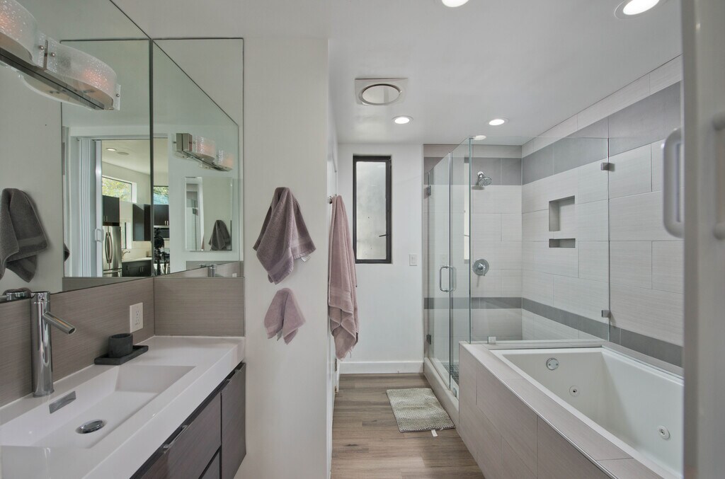 This Amazing and Luxurious Venice Beach Compound has a brand new second story and a recently remodeled home on the bottom floor. All ceilings and walls are soundproof. Private yards/decks are abound throughout the property . Flat screen TVs in every room, multiple fireplaces, Jacuzzi tubs, wireless internet, and satellite, HDTV, wood floors, fireplaces, large roof decks /multiple patio decks, wireless internet, satellite TV and private outdoor entertaining areas with barbecues. Any social situation covered and no stone unturned. Combining modern and traditional elements, the 2nd story section of the home has 4 bedrooms with an additional studio apartment with its own rooftop deck. It boasts a beautiful master suite, a 2nd bedroom, 3rd bedroom, and 4th bedroom sits 4 feet above the 1st floor house hence creating a soundproof barrier. There are multiple windows, large sliding doors and skylights making for an incredibly airy feeling. The open space with a custom island/ dining table is great for entertaining, connecting you to multiple decks with stereo speakers, picnic bench and barbecue for your outdoor dining pleasure. There is an extra-large rooftop deck with endless views, outdoor furnishings as well as a fire pit. Additional features include high ceilings, a gorgeous master suite that has a fireplace,private deck and much more.(All units are seperate without shared spaces) Parking: This home is located on a dead end street with of free street parking up and down the street however, in the event parking in a secure private parking space is important to you, a garaged parking space located on the premises could be provided at a fee.. This home is within a short walking distance to the Brand New Flag Ship Whole Foods Market, Starbucks and just one half mile from the Venice Beach Boardwalk, and two miles away from Santa Monica's Third Street Promenade, Pacific Coast Highway (PCH), the 10 Freeway, and Los Angeles Airport (LAX). Santa Monica has been named the best neighborhood/area for great restaurants in Southern California by the 2018 Zagat Guide and also honored by Forbes recently as being one of the top ten dining destinations in the world. Walk to Venice Beach in 10-15 minutes, or just five minutes by bicycle. The house is in a friendly residential neighborhood on a dead end street, with easy access to Santa Monica, Pacific Coast Highway (PCH), the 10 Freeway, and Los Angeles Airport (LAX). This property is perfect for professionals, entertaining, and for couples with pets.