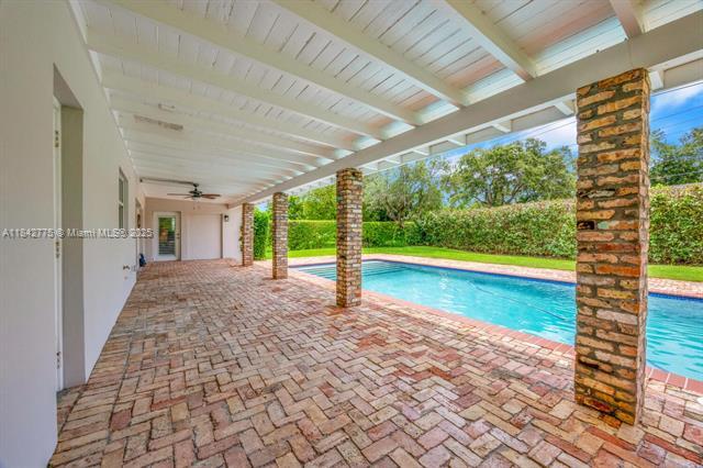 Beautiful home near Continental Park offers comfort, style & convenience. This updated 3-bed, 2-bath home sits on a quiet street with beautiful trees. The home offers lots of natural light and comfortable spaces. Features include impact doors & windows, spacious living areas, and porcelain flooring throughout for low-maintenance living. The large yard features a pool and spacious terrace—a true private oasis for relaxation or entertaining. Enjoy peace of mind in this conveniently located home near top-rated schools, shopping, dining, and major highways. This home offers the best of suburban tranquility and urban accessibility. 8100 SW 107th St MIAMI, FL 33156-3612 ML#: A11842775