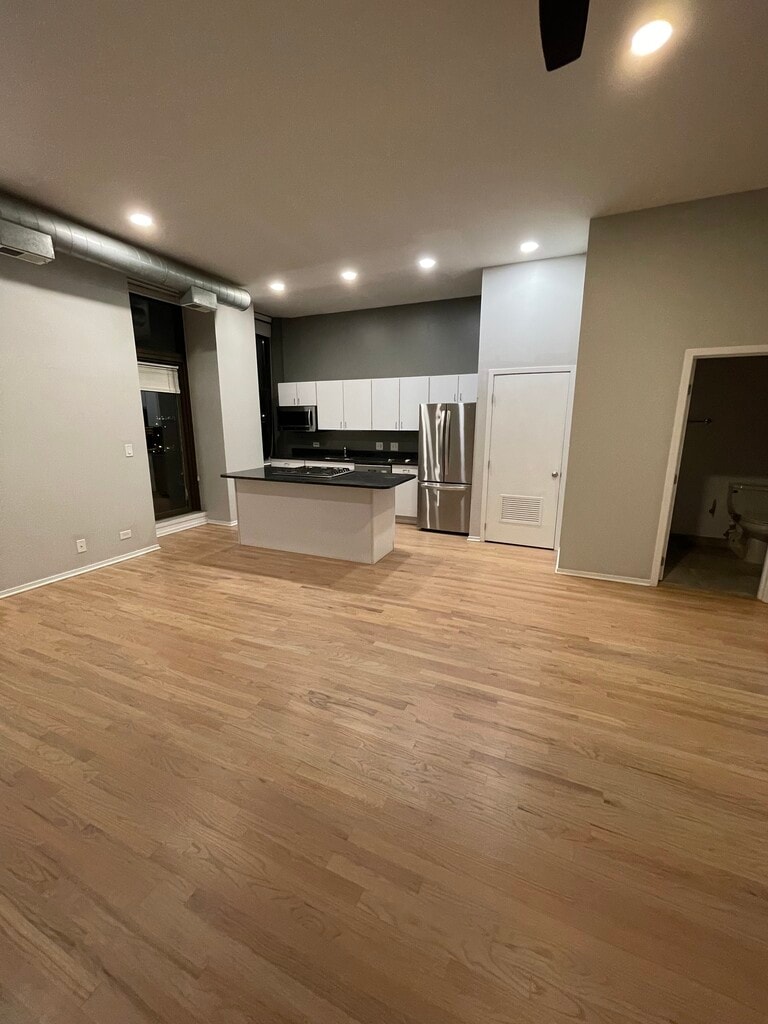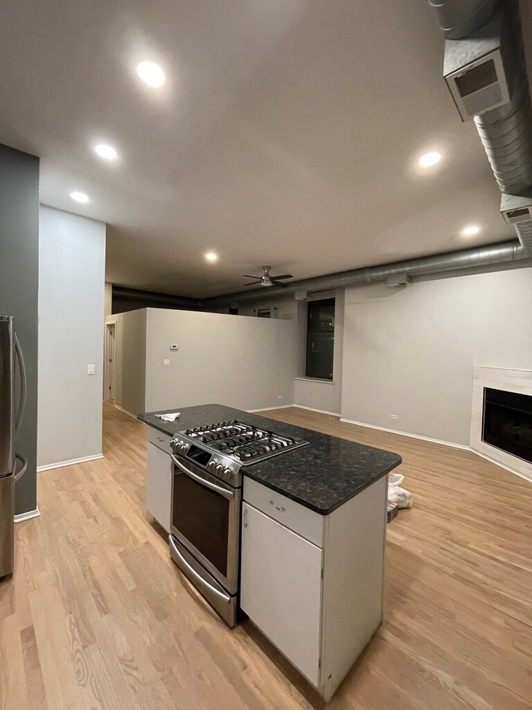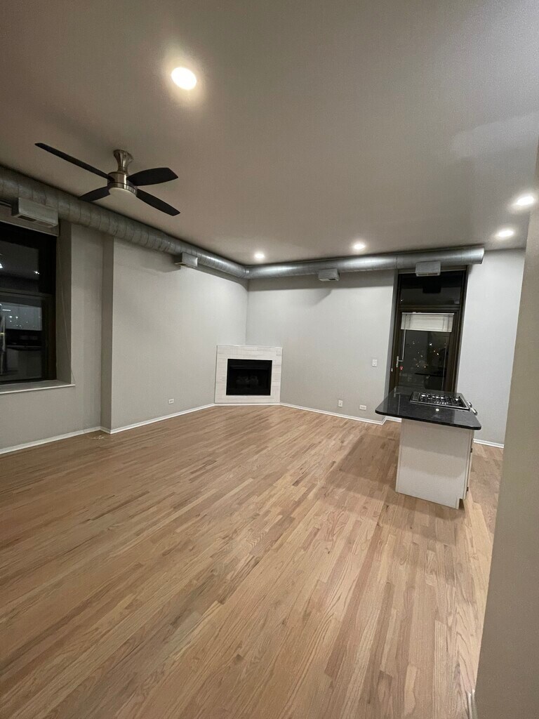 1 Parking Spot INCLUDED! 1 bedroom/1 bath loft apartment in a secured full amenity building. Very popular building with healthcare professionals. Walking distance to the Chicago Medical District. • Bright and sunny top floor corner loft with large windows, high ceilings and great views of the Chicago skyline. • Secured outdoor lot parking space with gate door opener. • Hardwood floors, except for tile in recently renovated bathroom. • Brand new furnace and air conditioner. • High-end stainless steel appliances including gas stove/oven, french door refrigerator, dishwasher and microwave. • Granite counter-top in the kitchen. • IN UNIT washer and dryer. • Large windows with shades. • Oversize bedroom with a large closet with closet organizer. • Large storage cage. • Gas fireplace. • Balcony. • Walk to CTA, “L”, campus transportation, Medical & Dental schools and hospitals. Secured building with a large lobby, door attendant and on-site building engineer. • Secured & nicely equipped exercise, bicycle, party and package holding rooms. • Trash chute on each floor. • Large roof top deck with 360 degrees view. Fantastic view of the Chicago downtown. • Hot/cold water, garbage pickup, cable TV and internet included in the rent. • Secured building located at the UIC campus, across from the historic Arrigo Park. • Very popular building with healthcare professionals. • Sorry, no pets or smoking allowed.