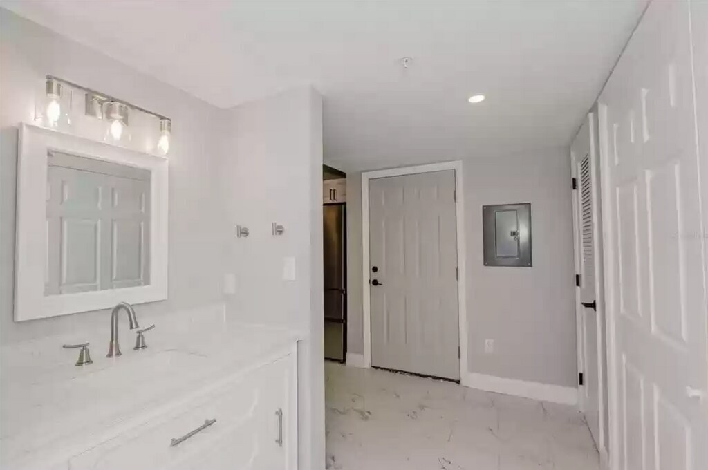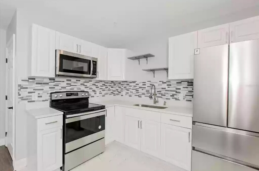 Fully renovated Studio apartment with full kitchen and washer/dryer combo in unit. Everything is brand new is this stunning ground floor unit. Inside is an open concept that featuring recessed lighting, laminate & tile flooring, fresh paint, stainless steel appliances, quartz countertop, large basin sink, and lots of cabinetry for storage. The bathroom features a tiled shower with a rain shower head. Quiet community of Grenelefe conveniently located in Haines City and close to I-4. Plenty of room to walk or ride a bike thru the abundant trees and beautiful landscape.Requirements include: $43 online application fee, first month of $1,150, $1,150 refundable security deposit plus $100 clean fee due before move in. At least 3 times rent to income preferred and credit score of 640.