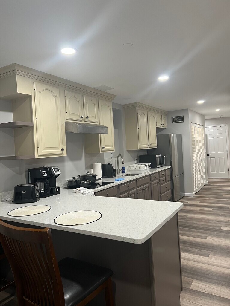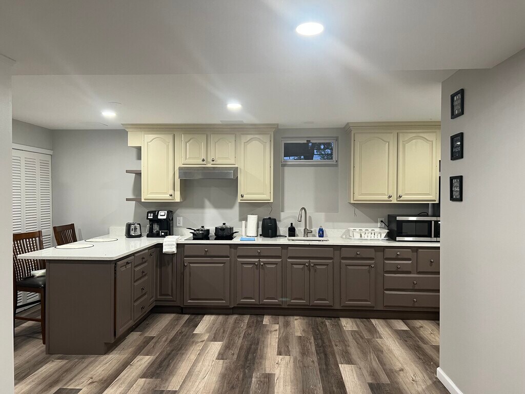 "FULLY FURNISHED SHORT-TERM RENTAL, Perfect for Working Professionals Inviting & Modern 1-Bedroom Basement Apartment in the Heart of Rosedale - Utilities Included Welcome to this newly constructed, beautifully finished basement apartment in Rosedale, designed with comfort, privacy, and ease in mind. With its own private entrance and a smart, single-level layout, this 900-square-foot space offers just the right blend of coziness and modern design for a single tenant looking for a peaceful home base. The bedroom is thoughtfully furnished with a queen-size bed, a dresser with a mirror, a nightstand with a lamp, and a regular closet to keep things neat. A ceiling fan with light keeps the room comfortable year-round. The attached bathroom features a sleek single vanity, a toilet, and a walk-in shower, which are perfectly functional and easy to maintain. The open-concept living area includes wooden floors, a cozy seating setup, a wall-mounted smart TV, and another ceiling fan with light, giving you a relaxed and stylish place to unwind or stream your favorites. The brand new kitchen is a standout, fully stocked with brand new appliances and essential cookware. There's counter space with seating, which adds a modern touch and makes everyday meals simple and social. There's a second closet in the hallway for extra storage. Free street parking is available right outside, and in-unit laundry makes everyday tasks more convenient. Utilities are included in the rent, so budgeting stays simple. Another tenant lives in the upstairs unit. They're extremely quiet and respectful of the shared space. Located in a quiet neighborhood just 12 minutes from downtown Baltimore, this home offers both peace and convenience. You're close to major medical facilities like MedStar Franklin Square, GBMC in Towson, Kennedy Krieger Institute, and Sinai Hospital. Daily errands are easy with nearby spots like Super Fresh, Giant Food, and Aldi. Plus, outdoor time is right around the corner at Rosedale Park and other local favorites. It's within a block away from Pulaski Highway, which has several restaurants. This could be the perfect fit if you've been searching for a stylish, low-stress place to call home. Come and see it for yourself and settle into a space that feels just right. Reach out today to make it yours.