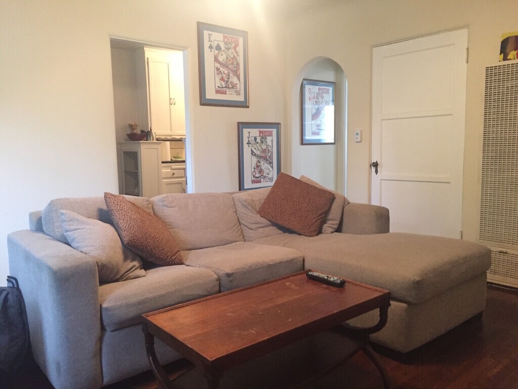 About this northside Santa Monica rental: Easily one of the best locations to call home in Santa Monica. This unit is located just a few doors off Montana Ave and on 14th St in a nice small Spanish style building. Large 1 bedroom 1 bath apartment. Within 3 blocks walking distance you have several of Santa Monica's best restaurants, cafes, retail stores, exercise studios, nail salons, dry cleaners and 2 grocery stores— and you are only 14 blocks from the beach. It is a large 650 sq ft apartment, hardwood floors, spacious living room, a coat closet in the living room and a hall/linen closet as well as the bedroom closet. Laundry room with modern washer/dryer, shared with only a few neighbors, is just below the apartment. The yard is used daily by children from the neighborhood who play there together, some rabbits and two friendly dogs who run free in the yard throughout the day. Tenants with dogs will be considered- it will only work if the dog is good with people of all ages and other dogs. If you’re considering renting with your dog you may want to bring the dog to the tour. No cats. *The pictures include some of the previous tenants furniture. The unit will be rented unfurnished. *Unit is occupied so showings will be grouped and limited.