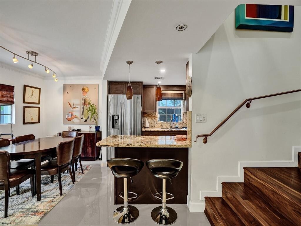 Enjoy total privacy in this exceptional quite secure,(BACK POOL, NOT FRONT) a huge, lush yard and a PRIVATE HEATED POOL W/ wide beach step—perfect for relaxing in the shallow water. Large screened in patio, overlooking pool and 2nd fl balcony. Sliders open up, allowing a seamless view and extension of living space. New porcelain tile flooring freshly painted in crisp white. Open-concept a modern kitchen, granite countertops, stainless-steel appliances, plus a separate den/office for added flexibility. 2 spacious primary bedrooms each with ensuite bathrooms, walk in in shower,. Plenty of interior storage, plus outdoor shed ideal for golf clubs, bikes etc. 3 parking spots, 2 in front, one covered in. Located close to Las Olas, Beach, entertainment. Quick approval. NO AIRBNB / SUBLETTING. Listing Courtesy of: Joann Marcus/LoKation