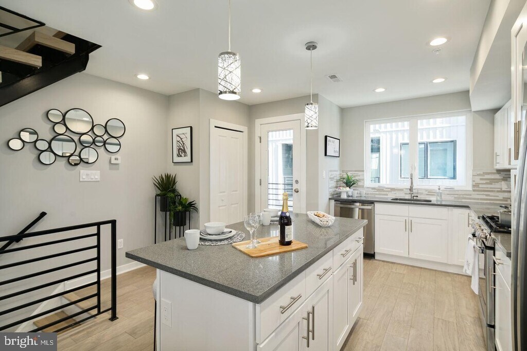 Welcome to 815 Perkiomen Street, Unit 14, a luxurious 3 bedroom, 2.5 bathroom townhouse with a full sized attached garage in the heart of Philadelphia's vibrant Fairmount/Francisville neighborhood! This light-filled, modern home was recently built in 2020, and includes a green rooftop deck with gorgeous 360 degree views of the city skyline! Walk into the main entrance of the home, and you will find a coat closet and powder room. Continue up to the main living level and you will immediately be drawn to the abundance of natural light from the large windows. The gourmet eat in kitchen is the heart of the home featuring custom wood cabinetry, quartz countertops, GE stainless steel appliances and a tile backsplash. The large center island transitions beautifully to the main living area. The main living area is all open concept, with access to the balcony, perfect for everyday living and entertainment. The second floor boasts two bedrooms, a full bathroom with a bathtub, and a laundry closet. The third floor is a private primary suite, including a full bathroom with a double vanity, an oversized shower with glass doors, and a linen closet. And last but not least, ascend up the spiral staircase, to the amazing rooftop deck with spectacular views of Center City and beautiful sunrises and sunsets! This home has beautiful finishes throughout including engineered hardwood throughout, an open riser floating staircase, and ample overhead lighting. Take advantage of the walkability of this home, and the ultra convenient location just steps away from amazing restaurants, as well as playgrounds, the Art Museum, Fairmount Park and the Schuylkill River.