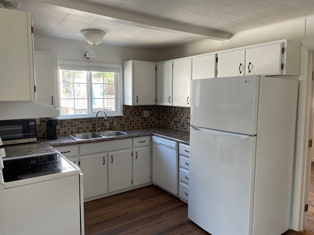 Charming rebuilt house with large private garden back yard. 2 beds 1.5 baths. Central heat a/c heat pump. Inside washer and dryer. One car garage. Quiet street, walk to 3rd street 1/2 mile.