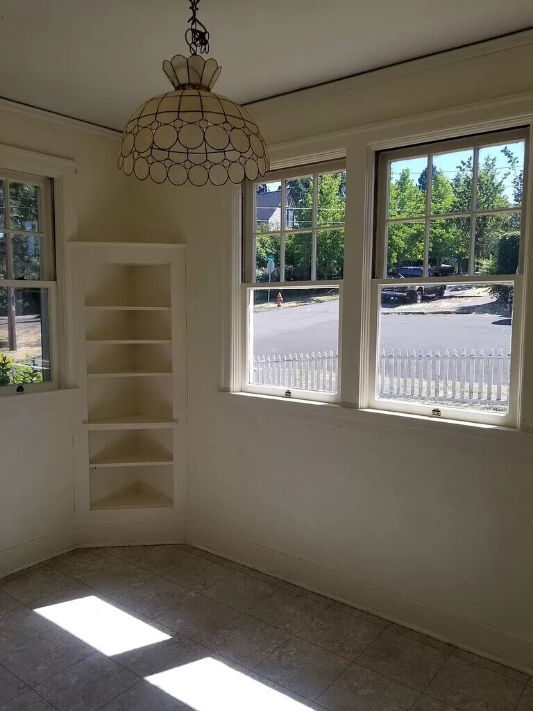 The 1,300 sq. ft. main floor features 2 bedrooms, 1 bath, spacious living room and dining room, kitchen, breakfast nook, enclosed porch, and beautiful refinished hardwood floors. Partially finished basement with ample storage. Close to park, library, and transportation in quiet McLoughlin neighborhood. No smoking. No pets allowed.