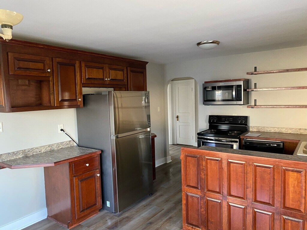 Renovated 1 yr ago, 2-bedroom,1 bathroom house. Features Luxury Vinyl flooring, new appliances, washer, dryer hookup, garage and a lovely back yard. Tenant will be required to mow the lawn as part of the rental agreement. Please call Dan or Tom with any questions. Application, Full credit report and background check required (credit score of 600 or better). Security deposit is $1200. 1 small pet may be allowed with $350 Pet deposit and $100monthly pet fee.