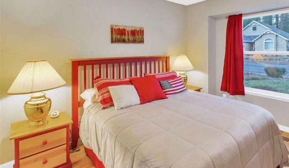 Fully furnished 2 bedrooms and 2 bathrooms single family home for rent in Graeagle. Fabulous location on the 16th fairway of Plumas Pines golf course. Great room design with open concept dining and family room with a wood burning fireplace. Kitchen with a small dining area, and Washer-Dryer in separate space enroute to attached 2 car garage. Large Master Suite with ensuite bathroom, dual sinks, soaking tub and shower with walk in closet off the dining room, whilst the second bedroom is the opposite side of the house with direct access to the main bathroom. Deck is south facing onto the golf course with fabulous views of the fairway and green.