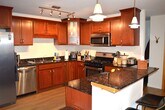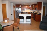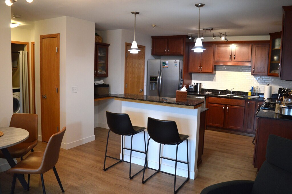 Rent this modern 2 bedroom unit in the Promontory Condominiums! Close to everything the West Side has to offer. The unit opens with a welcoming hallway that leads into a bright, open concept living room and kitchen area. The fully equipped kitchen features granite countertops, a stylish new backsplash, stainless steel appliances, and a center island with breakfast bar. The living room provides direct access to a private balcony, offering a great space to relax. The split bedroom layout provides extra privacy. The primary suite includes a private bathroom, while the spacious second bedroom and full bathroom are located on the opposite side of the unit. In unit laundry facilities are an added convenience. This unit includes water and 1 underground heated parking space. ***SORRY NO PETS PER CONDO RULES.*** 1 Underground Parking Space Central Air Granite Countertops In Unit Laundry New Flooring Private Balcony Professionally Managed Sorry No Pets Water Included
