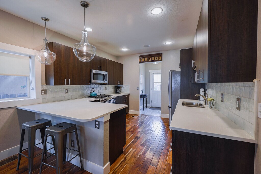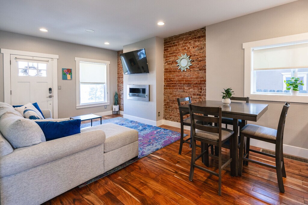 Charming home with a serene backyard oasis, featuring a private hot tub. Inside, you'll have a bedroom with Roku TV and walk-in closet, a private office with computer docking station and sofa-bed, a spacious living room with Roku TV, and an open equipped with all the necessary appliances and kitchenware utensils and dishes. Located in a vibrant neighborhood, you're just steps away from restaurants, cafes, bars, and shopping. A perfect blend of comfort, outdoor charm, and unbeatable location. Home is fully furnished.