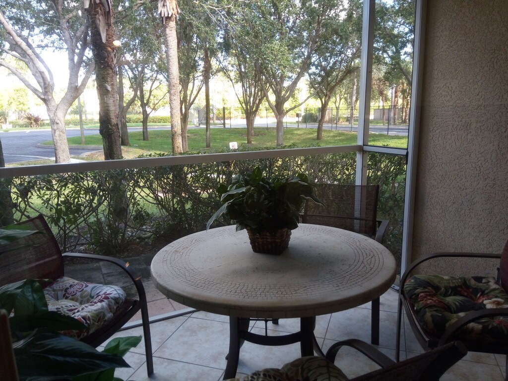 Available in February Beautiful condo in great location close to shopping, dining and 75. Fully furnished, rent includes water, trash and sewer. Kitchen features beautiful granite counter top with stainless steel appliances, new self cleaning range, dishwasher, microwave, fridge. Washer and dyer in unit. Screened lanai. Walking distance to the pool and gym. Gated community with video surveillance