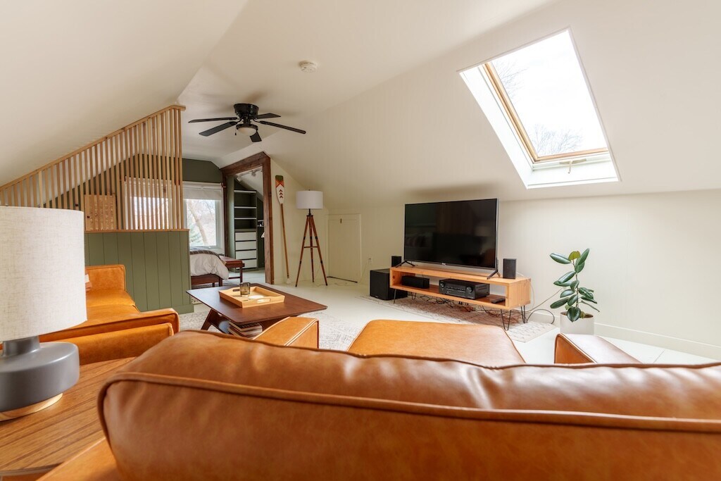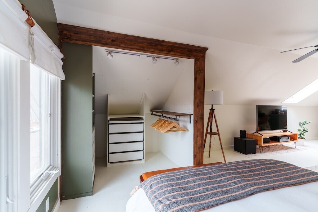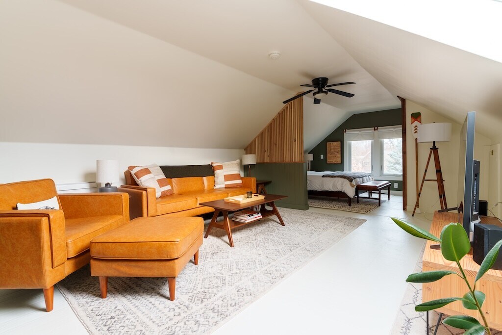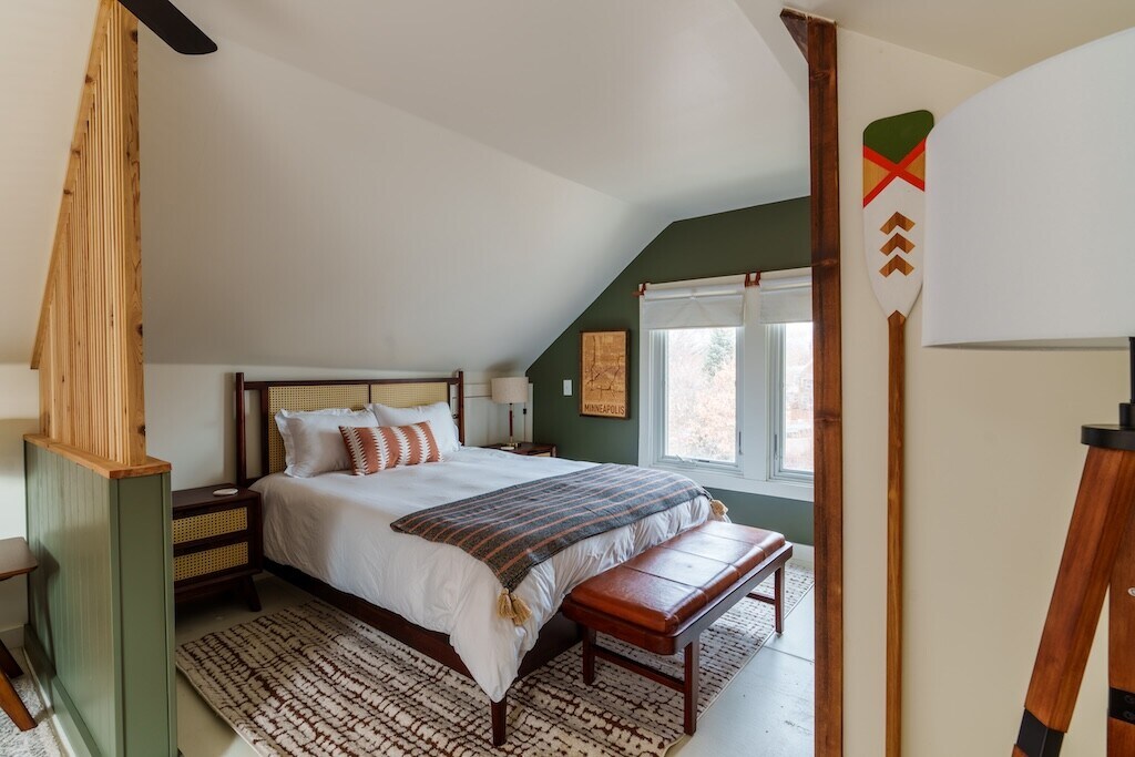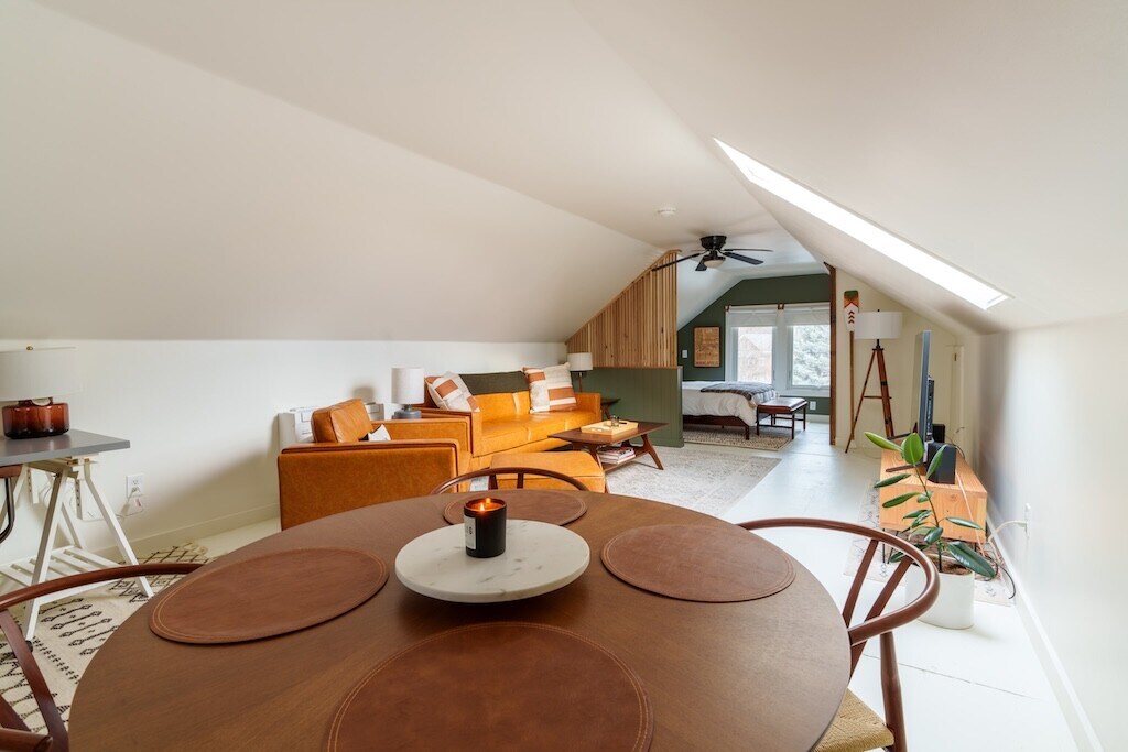 **Month to Month Furnished Rental** - all utilities, parking included. Leases can be 1-12 months depending on agreement Welcome to Harry's Place: a freshly renovated, 800 sq ft light-filled attic loft. This is a private entrance, open floor-plan suite, located on the top floor (attic) of my three-story, multi-family home built in the early 1900's. The Scandinavian/Mid Century influenced space was designed to be ultra cozy and give guests the proper northern hospitality experience while in MPLS. The space features multiple sky lights, spacious closet, a large desk space perfect for remote work and a fully stocked kitchen with a Nespresso machine. The Property: Centrally located next to the river in charming Northeast, it's the perfect blend of urban and neighborhood vibes. There's always free street parking and very easy access to downtown, UMN campuses (East and West Banks), multiple hospitals (University of Minnesota, Abbott Northwestern, Childrens, HCMC), highways and public transit, groceries, restaurants and coffee shops, green spaces, and more. This space is located in on the top floor of a Triplex. The 2nd floor is unoccupied and first floor unit is occupied by wonderful long term renting tenants. You will access the space through a side private entrance and stairway that are shared by all three units; the third-floor unit is exclusively for the use of guests and opens via a keyless lock with your own unique entry code. The unit has a queen bed and a couch that folds out into a full bed to accommodate one additional guest. The kitchen should cover your basic needs, equipped with a full size fridge, microwave, tea kettle, toaster, Nispresso coffee maker, convection stove and all necessary pots/pans/cutting boards, etc to cook anything. Please note that we do not have a dishwasher machine (in the works) and laundry machine is not in unit but free on site in the basement. You are also welcome to spend time in our shared backyard, hanging out or using the fire pit.