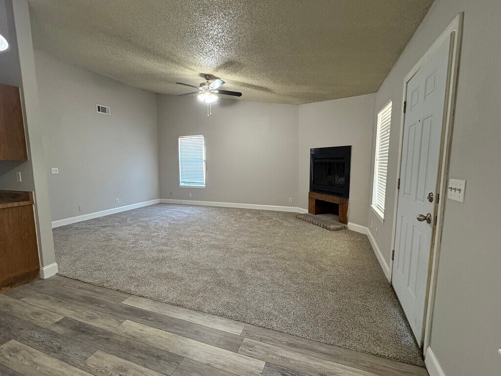 2 bedroom, 1.5 bath single story apartment. Close to schools & shopping. This apartment has new carpet throughout, new bathroom tub/shower combo, ceiling fans, fireplace, back patio, central heat & air, washer/dryer hook-ups, stove, refrigerator, dishwasher.. 1 Year lease is required