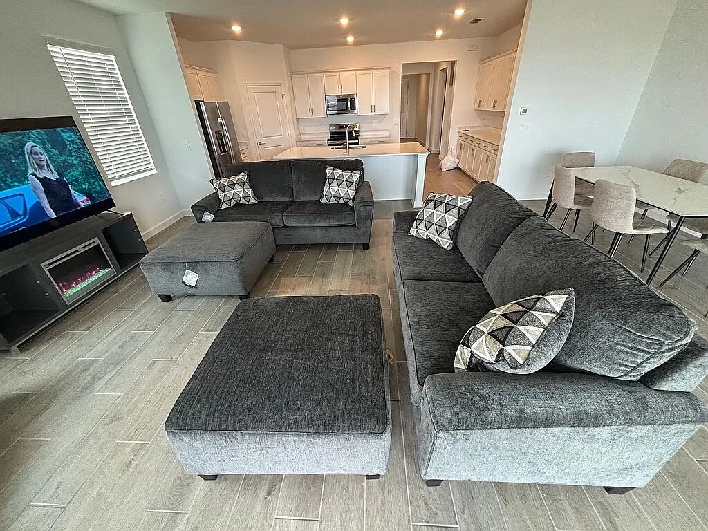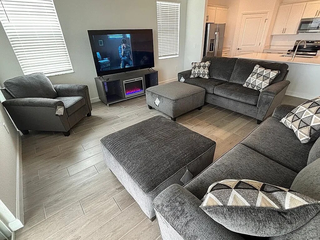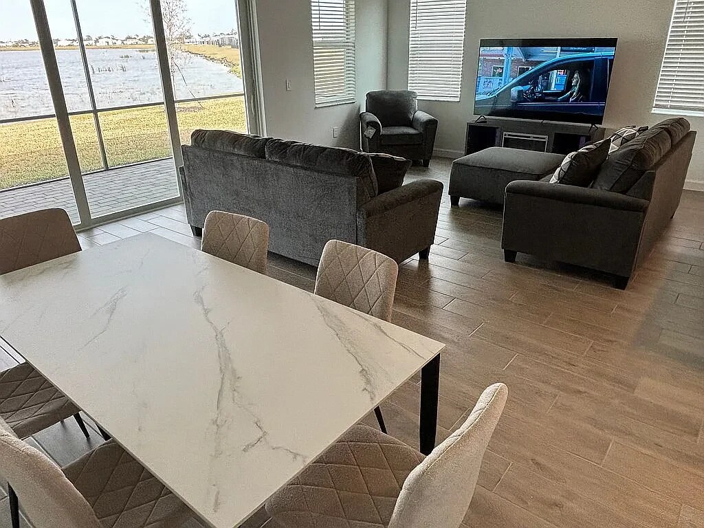 New 3/3 plus den lakefront home on a large lake in the gated community of Coco Bay in Englewood. Short drive to several area beaches. Rent includes all lawn and landscape maintenance and high speed internet! Plank tile throughout the home and is available for annual rental immediately. The kitchen has tons of cabinets and a large island. The large lanai with impact glass sliders overlook the longest view of the lake. This property is not in a flood zone yet is close to the beach. Non-smoking property. Annual lease, only pay electricity and water. Lawn maintenance and high speed internet included. Community amenities include pool, pickleball courts, and exercise room. New construction, impact glass, concrete roof, low cost of insurance, no flood insurance required, close to beaches, long water views of the lake, a bird sanctuary in your back yard, afternoon westerly breezes across the lake, ample space for guests with a 3 way split layout, separate den and long foyer, plus separate laundry room and 2 closets in the master bedroom. Plank tile flooring throughout.