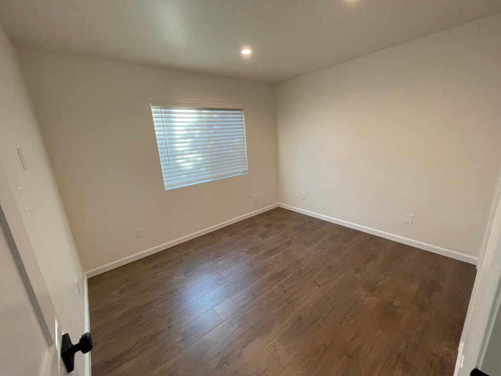 A newly built detached ADU at 828 N Nora Ave with 2 bedrooms and 1 bathroom totaling 621 square feet, available for rent starting March 2026. The space comes with an electric stove, ac unit, and washer/dryer. Electricity and water utilities included in rent. One car space in driveway available for parking. Private side entrance from driveway to ADU.
