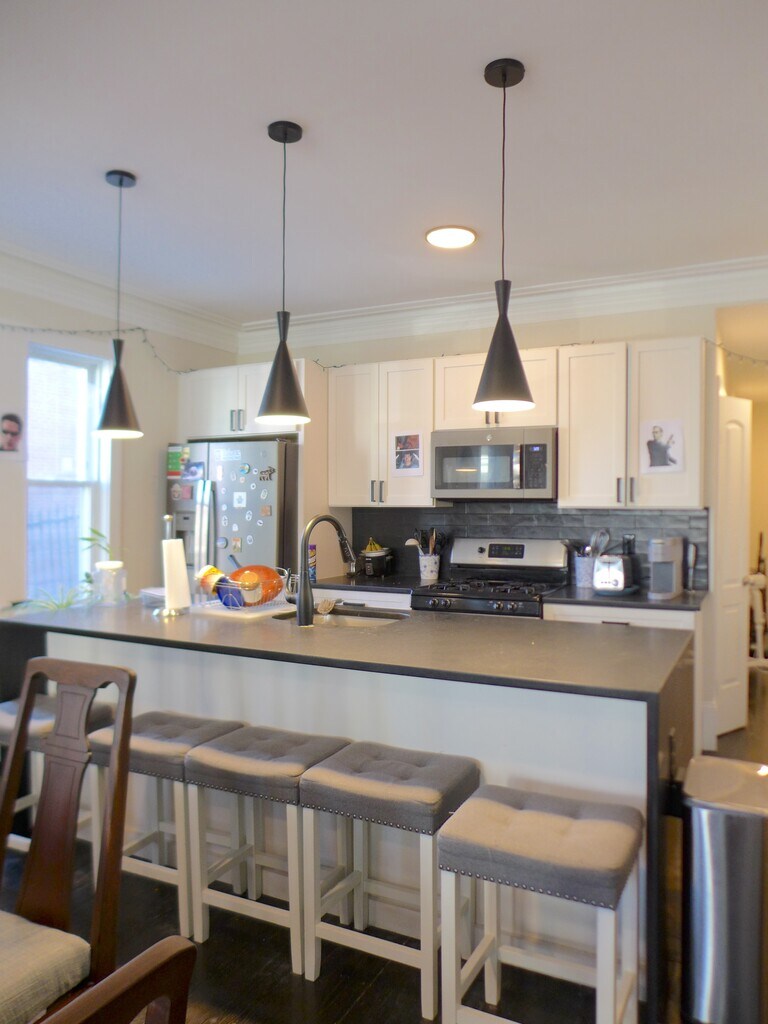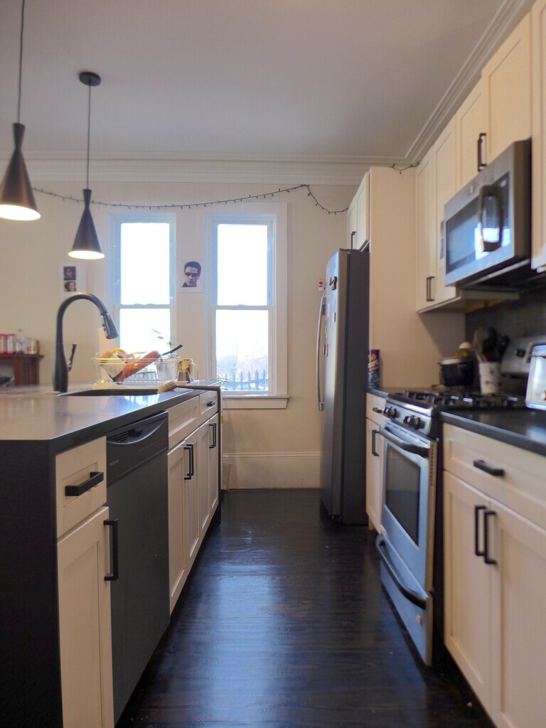 5BR / 2BA Mission Hill Duplex With Space, Style, and Parking NO BROKER FEE -Bedrooms: Five full bedrooms across a two-level duplex layout -Bathrooms: Two full bathrooms -Price: 7700 -Pets: Cats accepted, dogs negotiable -Layout: Two-level duplex unit with great separation of space -Floors: Hardwood flooring throughout -Ceilings: High ceilings for an open, airy feel -Kitchen: Modern kitchen with island, stainless steel appliances, microwave, dishwasher -Comfort: Central heating and air conditioning -Parking: Off-street parking available -Transit: Close to Orange Line -Shopping: Minutes to Top Stop & Shop and Walgreens -Nearby: Close to Northeastern University, Fenway colleges, and Longwood Medical Area