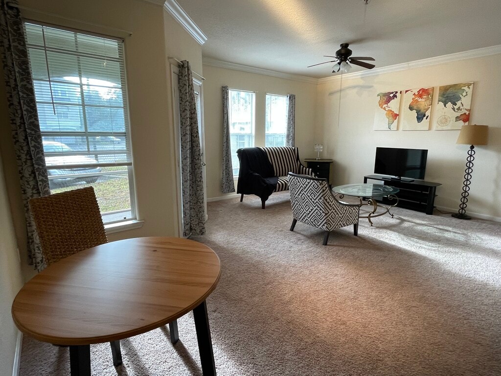 FURNISHED CONDO is available for rent in popular Southside. Easy access to the Beaches, downtown, fine dining and entertainment. Only minutes from Town Center, UNF, and Mayo Clinic. First floor, end unit condo only steps away from pool and fitness center. Nicely decorated open style living and dining room combo, large bedroom with walk-in closet. Screened balcony. In-unit full size washer and dryer. Valet trash service included. The condo is great for traveling nurses, business executives or someone just relocated to Jacksonville for work.