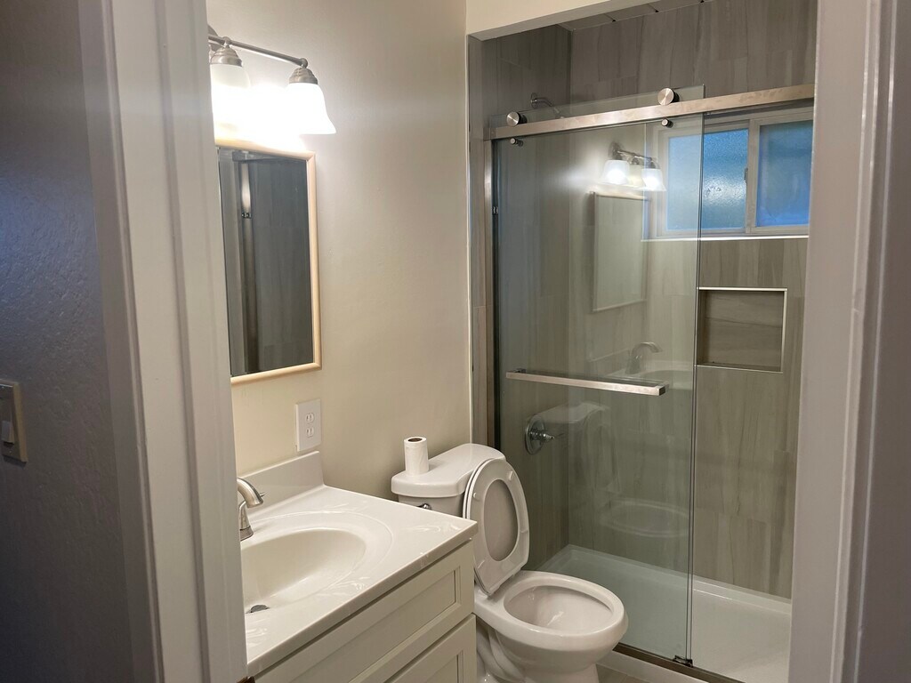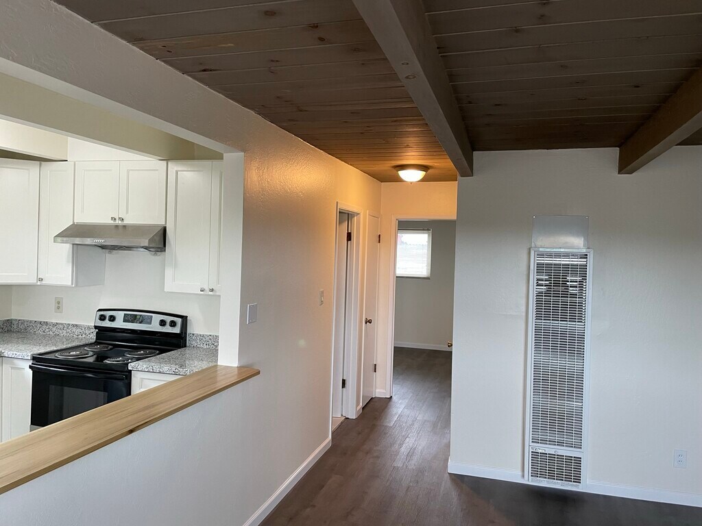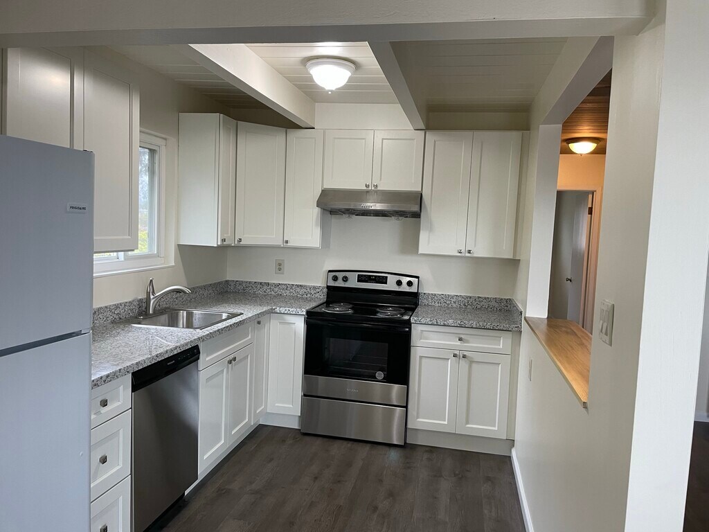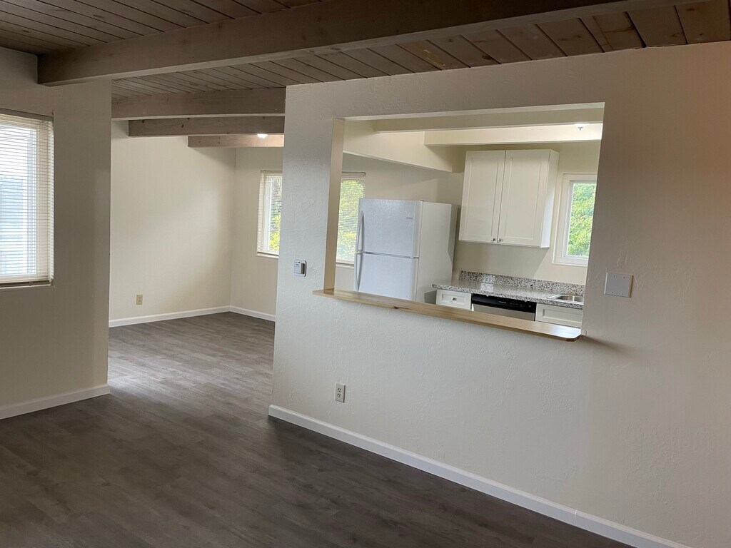 Remodeled 2 bed 1 bath, Dishwasher, hardwood floors, modern bathroom shower, near shopping and transportation, Second floor which is top floor Fairly new kitchen including granite counter top Carport for parking. On site coin operated laundry room.