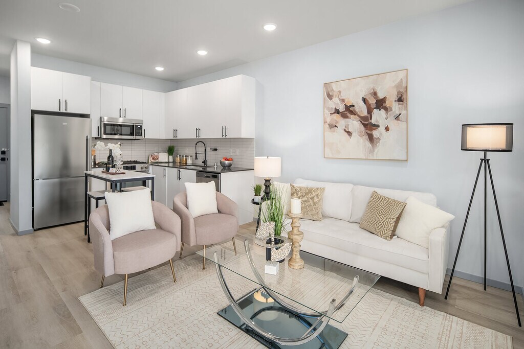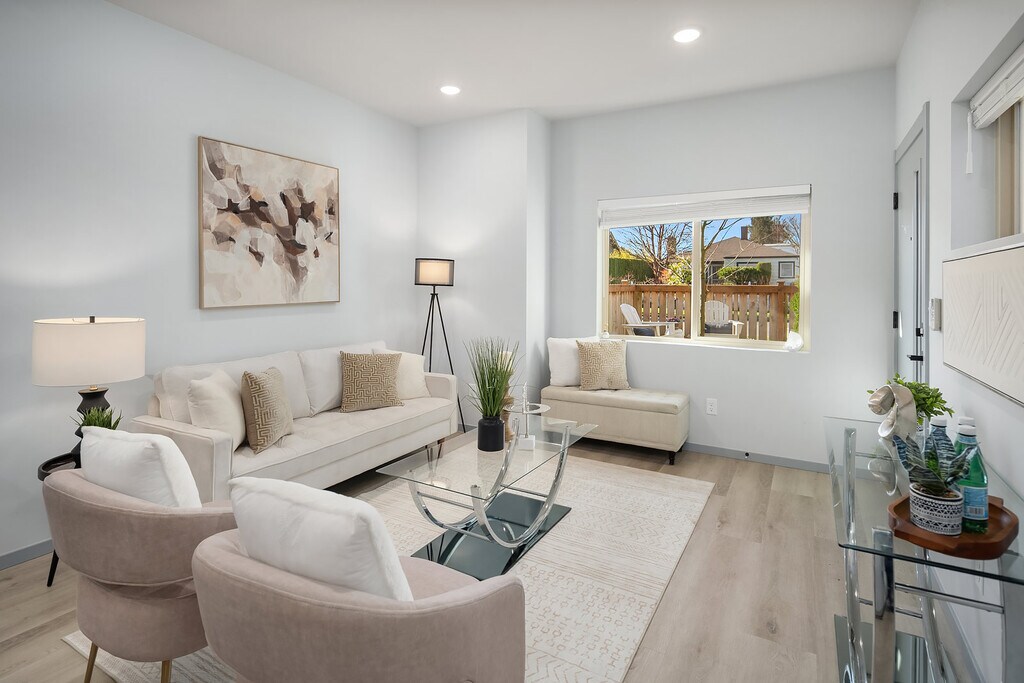 Located in the heart of Loyal Heights, this 2023 build newer-construction is tucked away on a quiet residential street and offers the perfect blend of comfort and convenience. A welcoming open-concept floor plan spans each level with high-end finishes designed for modern luxury living. The gourmet chef’s kitchen features quartz countertops, stainless steel appliances, and a gas range, making it ideal for both everyday living and entertaining. Hardwood floors and abundant natural light fill the home throughout. Two spacious bedrooms with generous closet space and two spa-inspired bathrooms are located on the upper levels, including a primary suite equipped with blackout blinds for added comfort. An upper-level laundry area with additional storage, mini-split heating and cooling, and a tankless water heater provide year-round efficiency and ease. Step outside to enjoy a fully fenced yard along with convenient access to major bus routes, making this home especially appealing for commuters. A small, three-unit, owner-managed HOA makes communication simple and efficient. A designated parking space plus ample street parking complete the home, all in an unbeatable location close to shops, dining, and just minutes from Golden Gardens Park.