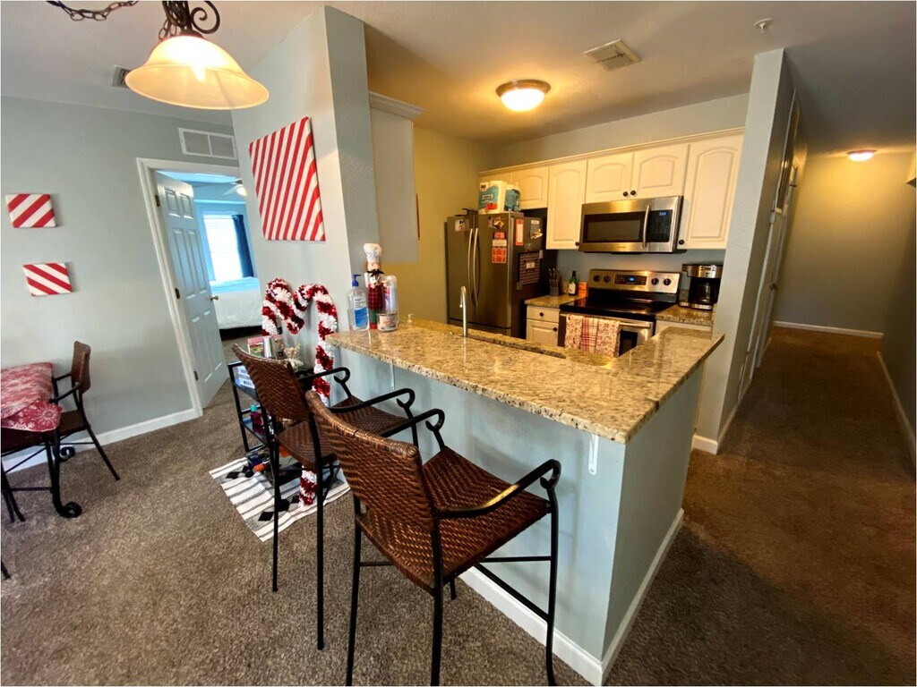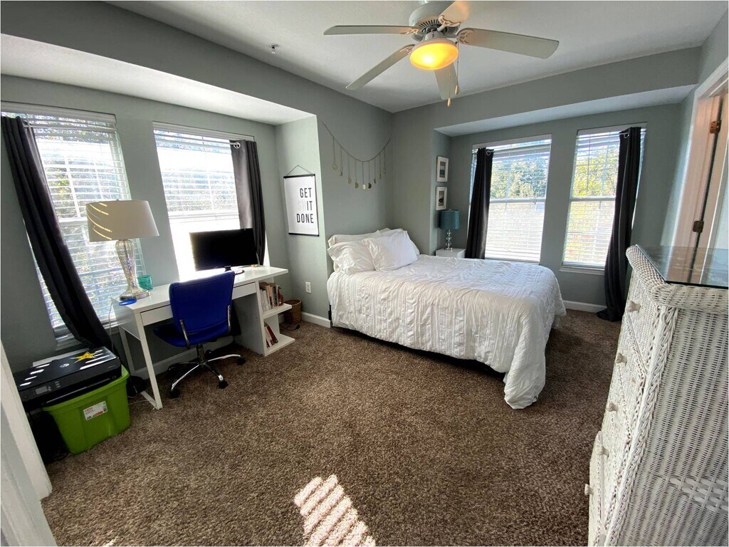 12 Month Lease, $6,800 deposit, Available Aug. 12, 2026. $6,800 deposit is security deposit and last month's rent. Beautiful 4 x 4 condo with all new upgrades from Gators Live Here Rentals! You'll love the balcony overlooking Depot Ave, super popular hang out space during nice weather. Oxford Terrace I was completed in 2005. Unit # 201 is a SPACIOUS 1,530 square foot condo with four bedrooms, each with their own private full bathroom. Just 2 blocks from Sorority Row. Residents can easily walk to chapter meetings, UF classes, or even Shands. The kitchen has an elevated breakfast bar and overlooks a spacious living area. This is the among the ONLY two communities within walking distance to UF classes with 4 bedroom condos. Each large bedroom has its own closet and bathroom giving residents total privacy. Unit # 201 is an upgraded unit with new stainless steel appliances and granite counter tops. This property is managed by independent owners with a focus on timely resolution of any problems in the unit. The central heat pump system is under four years old and is 16 SEER meaning your electricity bills will be LOW all year round. Your cable TV & highspeed internet are included. The complex was made from concrete block and has an elevator. Reserved parking is conveniently located in the downstairs community parking lot. Each unit comes with one reserved parking space plus plenty of covered parking for scooters behind a locked parking area where they are safe from scooter thieves! Additional parking spaces are available for rent one block away at another Gators Live Here Rentals property. The home comes fully furnished. Furry friends, cats and dogs, only if approved by owner. Dogs max weight 30 pounds. No kittens, no puppies. MUST be 100% house trained! Cable and high speed internet included in your rent.