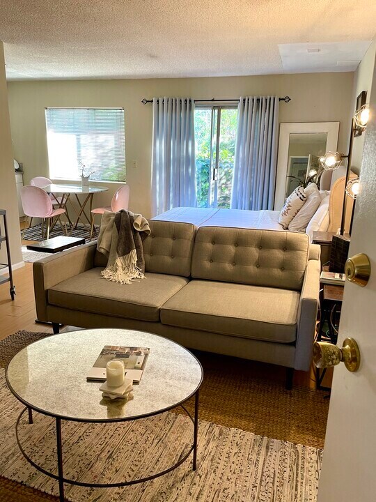 Private exclusive yard in tranquil guesthouse unit surrounded by single family homes. Very large walk-in closet. All hardwood floors and granite counter top. This is a bachelor unit with a full refrigerator. You can provide toaster-oven, microwave, hotplate, and outside grill. No smoking, no pet property. Furniture not included.