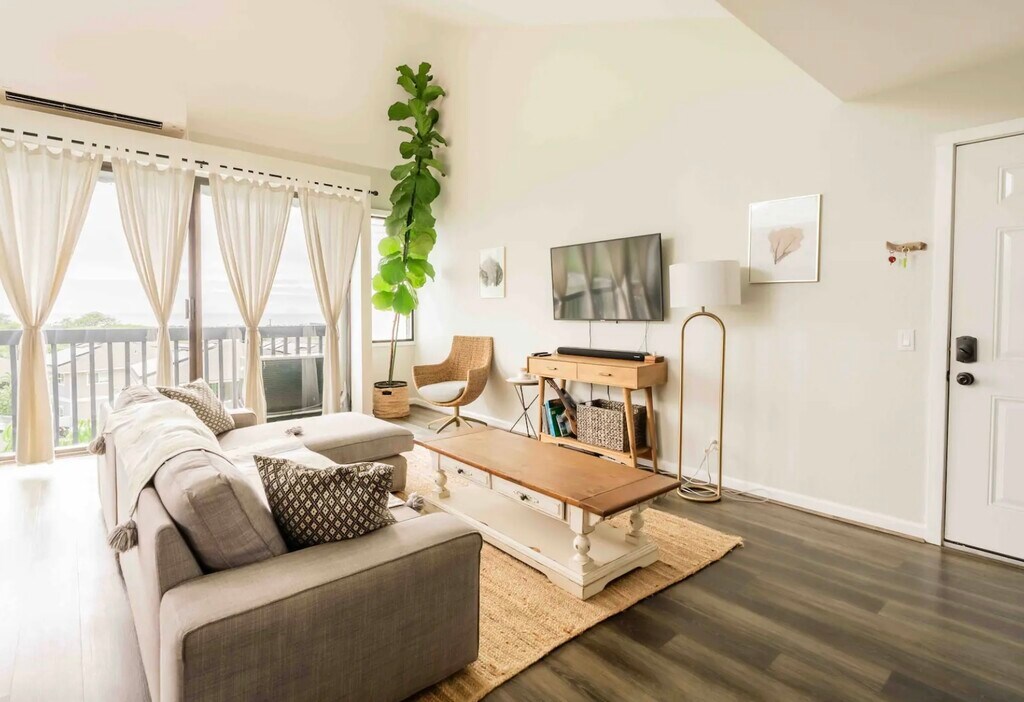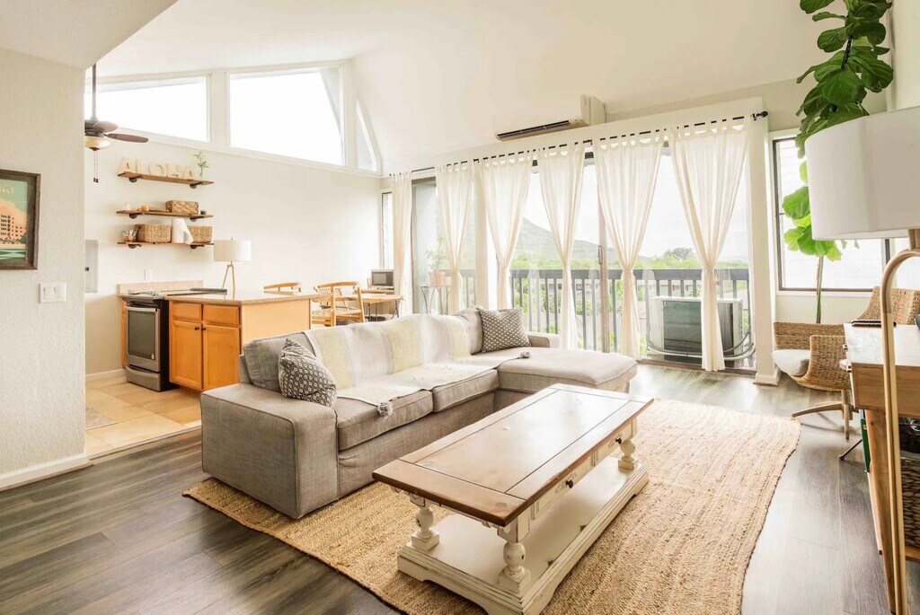 Fully furnished 2bedroom 1 bathroom in beautiful Makaha valley on Oahu, Hawaii. Located in the safe neighborhood of Makaha Oceanview Estates, this is a condo complex within a very respectful and safe, gated neighborhood. Top floor unit with lots of natural light, vaulted ceilings, washer and dryer in unit, and 1 assigned parking, with option to add another stall if needed for $95/month. There’s a split AC unit in the living room and bedrooms both have ceiling fans to keep you cool with the Makaha valley breeze at night. 1 mile to Makaha beach, 5 mins to pharmacy, 10 mins to Grocery, and 30 mins to Kapolei. 1 year lease starting November 1 or 15th. Serious inquiries can call, text or email for showing and availability.