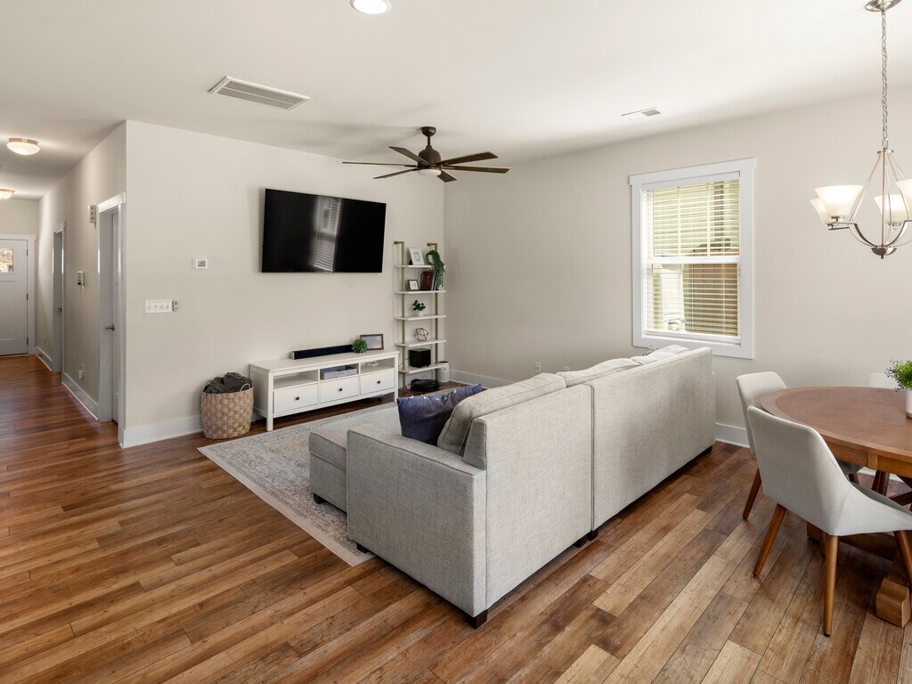 Located in the sought-after Sycamore Cottages community in Fletcher, this thoughtfully designed 4-bedroom Avondale floor plan offers a balance of space, functionality, and modern finishes. The home features a main-level primary suite, providing privacy and convenience, while three additional bedrooms upstairs offer flexibility for family, guests, or remote work. The interior showcases an open-concept layout complemented by luxury vinyl plank flooring throughout, creating a bright and cohesive living space. The kitchen is both stylish and practical, featuring 42-inch cabinetry, granite countertops, and generous prep and storage space—ideal for everyday use or entertaining. Natural light flows through the main living areas, enhancing the home’s warm and welcoming feel. Outside, enjoy a low-maintenance backyard that backs up to the community common area, offering the feel of an expanded outdoor space with room to relax or unwind, all without the upkeep of a large yard. The neighborhood is well maintained and positioned within a desirable school district, while also being just minutes from shopping, dining, and entertainment options. Lease Information: First month’s rent and an equal security deposit are due at lease signing. Although the home is shown furnished in photos, it will be leased unfurnished. The property is dog friendly with a maximum of one dog; no aggressive breeds permitted per HOA guidelines. All utilities are the tenant’s responsibility and must be placed in the tenant’s name prior to the lease start date. Showings are available seven days a week at your convenience. To schedule a showing or request additional information, please reach out by email, phone, or text to confirm your appointment. This home offers a rare combination of location, layout, and livability—schedule your showing today.