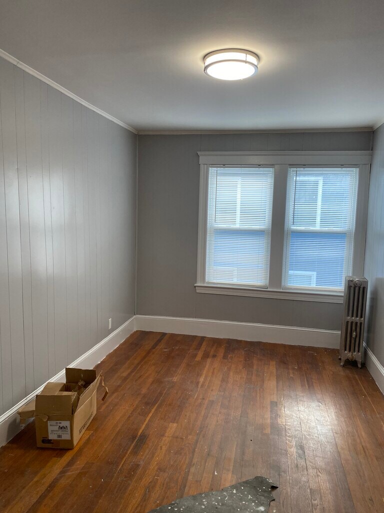 This modern 6 room 3 large bedroom Unit on the 1st floor with great size bedrooms all with good size closets. This space features a full size eat in kitchen with modern countertop's,glass cooktop stove , refrigerator, and hardwood floors throughout unit, full size dining room and living room All new lighting throughout, full size bathroom with tile floors, tub surround, & vanity. 1800 sq ft of living area walking distance to everything. Absolutely NO smoking, no pets, and first, last, security to move in. Good Income & credit score a must. Renters Insurance required, credit checks for each applicant & references. Coin op laundry in basement and off street parking. Professionally Managed property THIS Property is a duplex style home with two units DO NOT DISTURB TENANTS AND APPROACH PROPERTY!