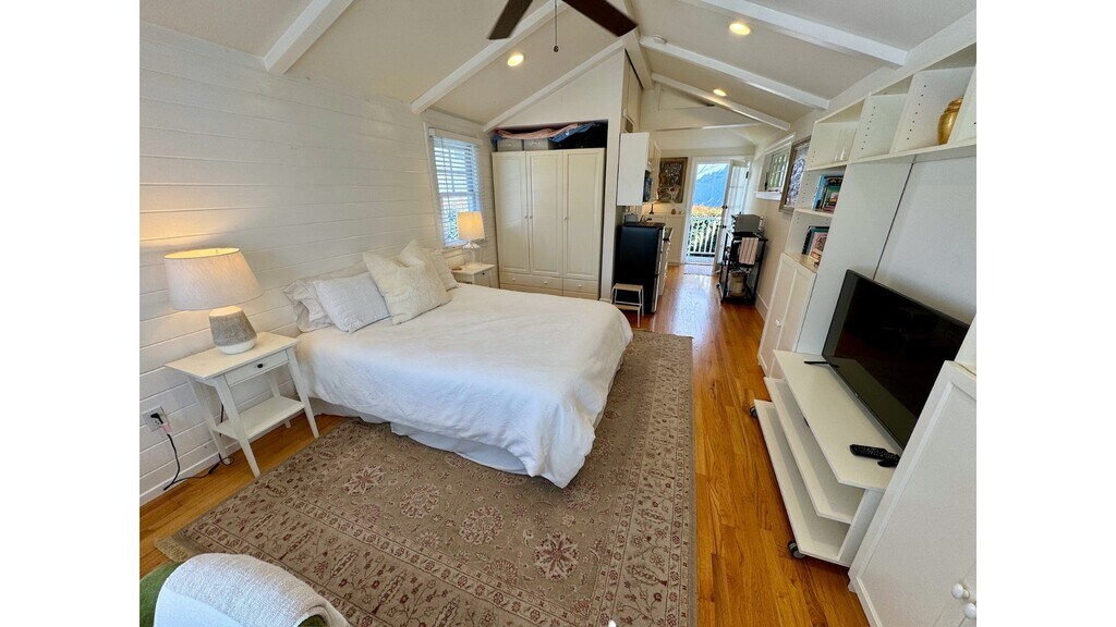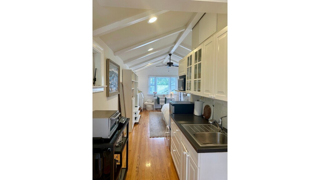ALL BILLS PAID & FULLY FURNISHED! GARAGE APT.- Built in 2008, Freestanding unit behind home. Quiet, upper rear efficiency-- compact, secluded, and comfortable. Linens, towels, dishes, and utensils all included. Beautifully tiled bathroom with big walk in shower. Vaulted ceiling gives the space an open and airy feel. Kitchen includes microwave, refrigerator, coffee maker, Toaster oven (no stove). Hi speed internet, Apple TV. Terrific location, very central, near film studios and Cedars Sinai. Exceptionally walkable neighborhood, steps away from Melrose shops & restaurants, Fairfax Ave., and The Grove. Lease is two months minimum, then monthly thereafter, making this a great place to land if you're new in L.A., or a great alternative to a hotel or corporate housing if you're in L.A. temporarily. Street Parking with guest permit. Non-smoking, No pets. Owners live on the property, and will make sure you have everything you need and feel comfortable and at home!