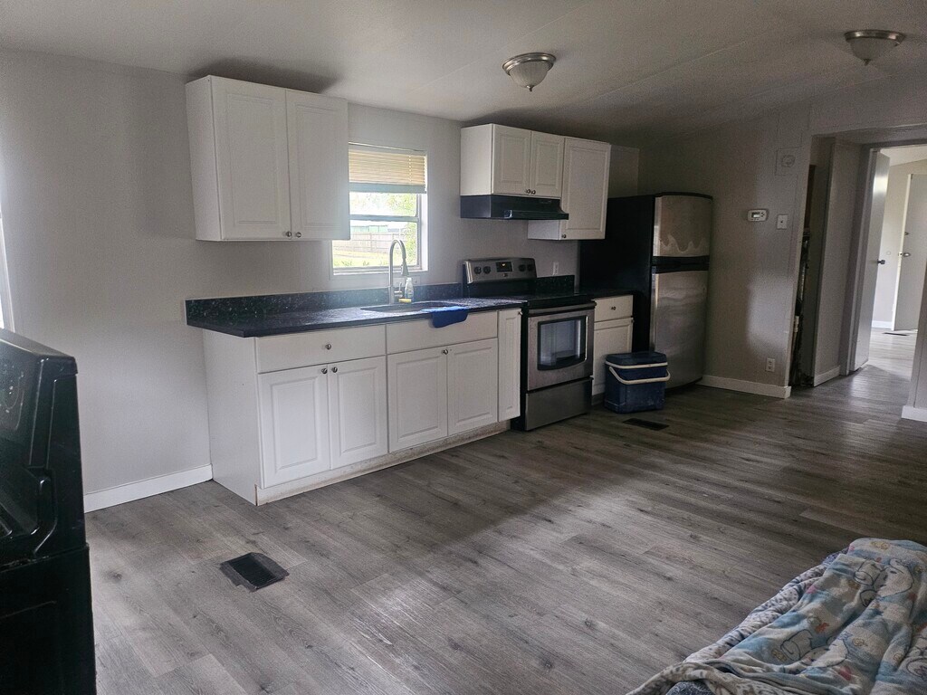 Totally renovated 3/2 Quiet corner lot on the Westside of Jacksonville. This home has all new paint and lvp flooring a new kitchen with stainless steel appliances. There are hook ups for a washer and dryer in their own laundry room inside of the house. House has a screened front porch and a covered rear deck for relaxing. There is also a large storage shednpn the property for tenants use. Don't miss the one.